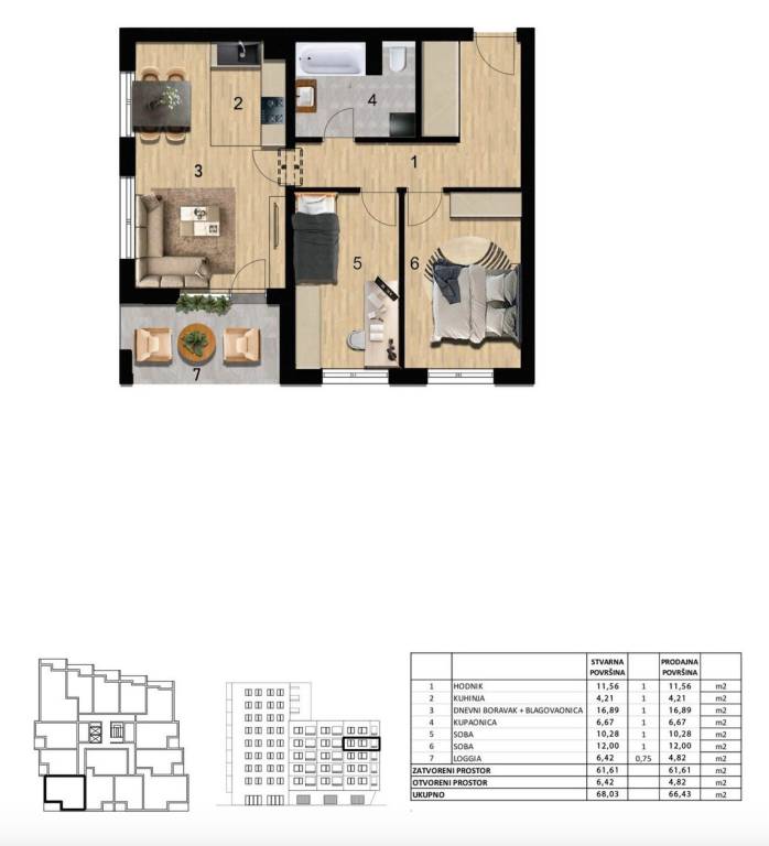 Luksuzan trosoban stan ukupne neto korisne površine 66,5 m2 smješten na 4. katu novogradnje. (B4-6)Sastoji se od ulaznog hodnika,dnevnog boravka s blagovaonicom,kuhinjom te izlazom na loggiu, 2 spavaće sobe i kupaonice.Projekt stambene novogradnje u mirnom zagrebačkom naselju Borovje. Moderna novogradnja koja spaja vrhunsku izvedbu, praktičnu lokaciju i udobnost života. Idealan izbor za obitelji, mlade parove, ali i sve koji žele sigurnu i dugoročnu investiciju u nekretnine.Udaljeno samo 11 km od Zračne luke Franjo Tuđman, 3,6 km od glavnog autobusnog kolodvora te 6,7 km od samog centra Zagreba, Borovje vam omogućuje brz i jednostavan pristup svim važnim gradskim točkama. Blizina autobusne linije dodatno osigurava odličnu prometnu povezanost, dok kvart nudi sve potrebne sadržaje za svakodnevni život - trgovine, škole, vrtiće i rekreacijske zone.Ovi stanovi ne nude samo lokaciju, već i izuzetnu kvalitetu izvedbe:· Energetski certifikat: Klasa A· Konstrukcija: unutarnji i vanjski armirano-betonski zidovi debljine 25 cm, pregradni zidovi unutar stanova od blok opeke debljine 12,5 cm, visina etaža 260 cm - za prozračne, svijetle prostore.· Krov: ravni neprohodni krov s termoizolacijom i PVC folijom.· Fasada: ventilirana - modernog izgleda i izvrsne toplinske izolacije.· Vanjska stolarija: troslojna PVC stolarija, antracit boja izvana, bijela iznutra.· Stubište: zgrada je opremljena s dva dizala koja povezuju sve etaže.· Parkirna mjesta: osigurana garažna parkirna mjesta.· Zidovi: bojani bijelom bojom, s keramičkim pločicama u kupaonicama i kuhinji.· Podovi: kombinacija laminata i keramičkih pločica.· Unutarnja stolarija: protuprovalna i protupožarna ulazna vrata.· Grijanje: podno grijanjeZa dodatna pitanja stojimo na raspolaganju.