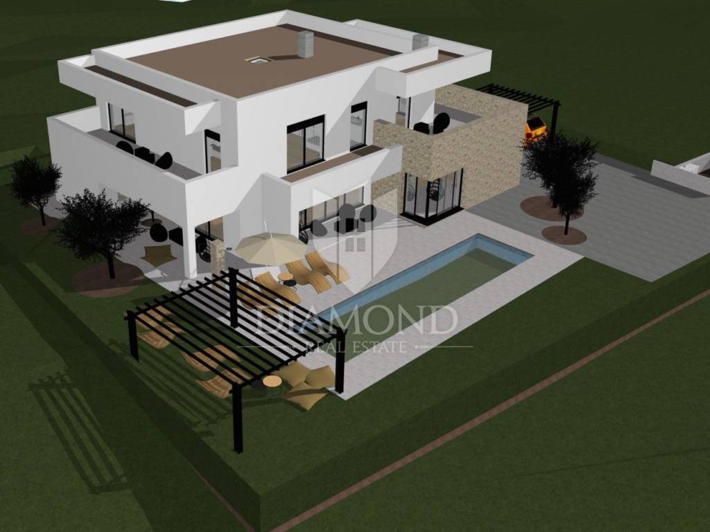 Just a few kilometers from the city of Porec and only a few minutes walk from the sea, this luxury modern villa with a swimming pool under construction is for sale.