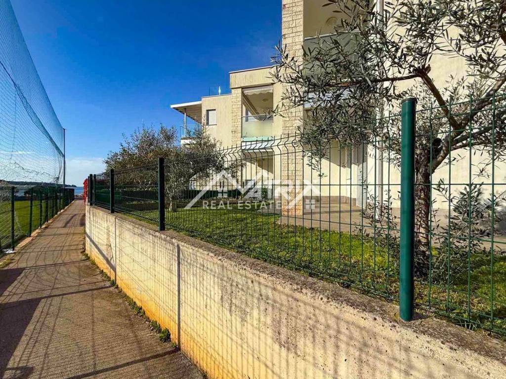 The apartment is located on the ground floor of a small residential building with only four units and offers 43 m² of interior space. It also comes with a private garden of 39 m², private parking of 34 m², and a storage room of 12.18 m². The sea is just a few steps away, making this property truly special.
