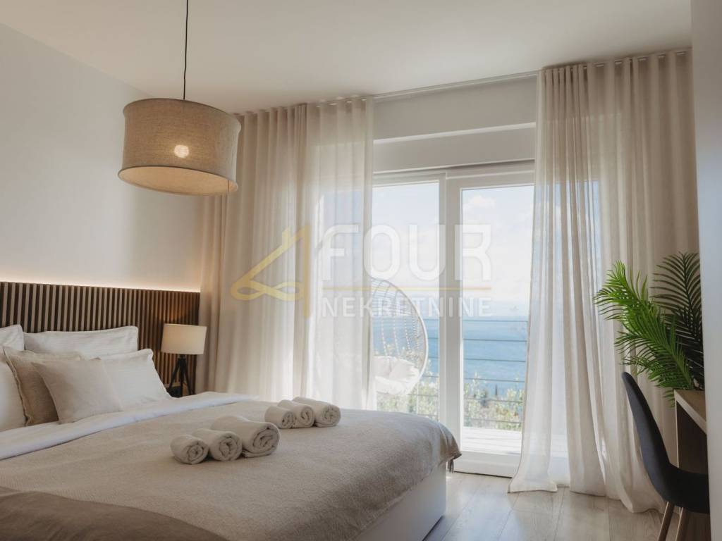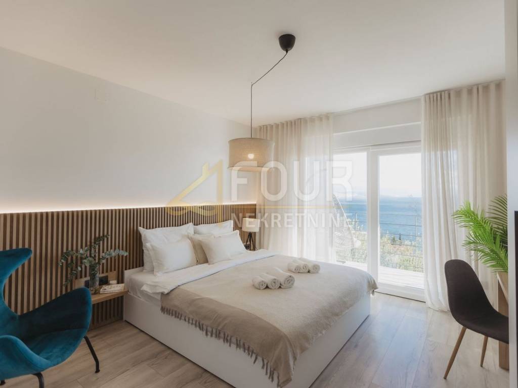 A beautiful detached house is for sale in Opatija, located in a quiet dead-end street with a stunning sea view. On a plot of 575 m², there is a modernly designed villa with a total living area of 242 m², surrounded by a landscaped garden, with spacious terraces offering a summer kitchen, sunbathing area, and relaxation spaces. Special comfort is provided by a heated pool, sauna, and additional areas for rest and socializing.