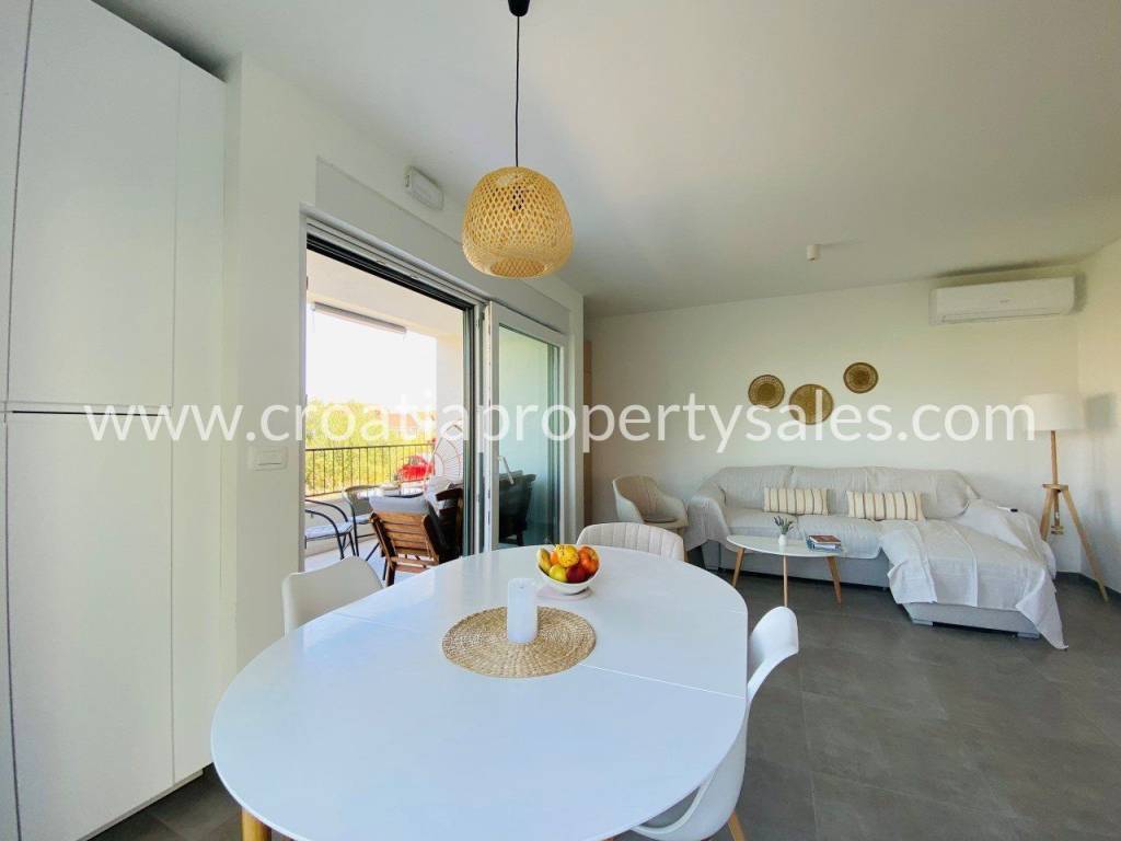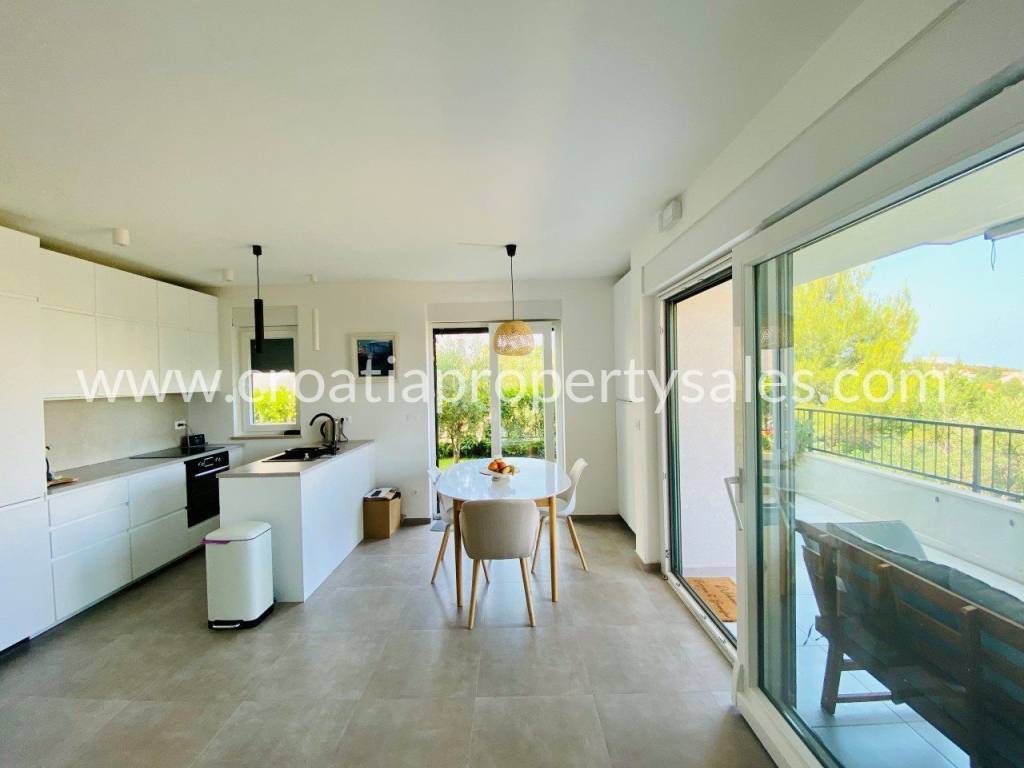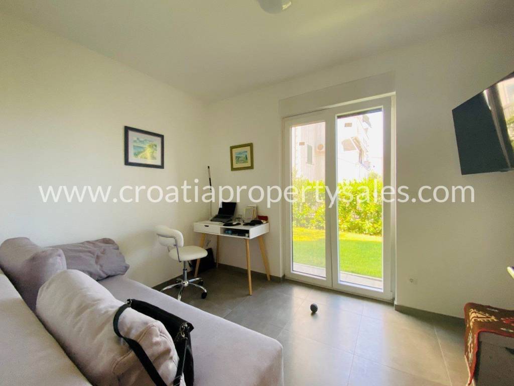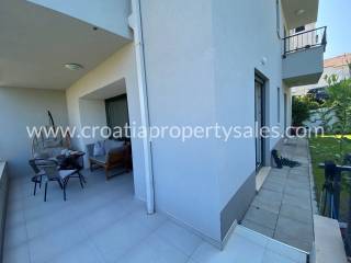 Fully furnished two-bedroom apartment with a garden of 54.56 m2.A modern and functional two-bedroom apartment on the ground floor is for sale, with a total area of 54.46 m2, with a garden and a storage room in the basement (6 m2).The apartment is located in a quiet and well-maintained environment, ideal for couples, smaller families or as an investment for rent.It consists of a hallway, two bedrooms, one of which has access to the garden, a bathroom and a living room with a dining room and a kitchen. The garden - ideal for a garden, gatherings or pets.It is being sold furnished, everything is newly equipped.It has a built-in IKEA kitchen with a kitchen island (10-year warranty), and all household appliances come with a 5-year warranty.The apartment has two air conditioning units (bedroom and living room), and an oil radiator.PVC windows with double glazing, electric shutters with built-in mosquito nets and additional canvas shutters on the balcony, burglar and fireproof entrance door, automatic garden watering with programmer.The apartment is ready to move in immediately, without additional investment. It is located 5 minutes from the beaches, supermarkets.It also has a parking space of 16.02 m2.