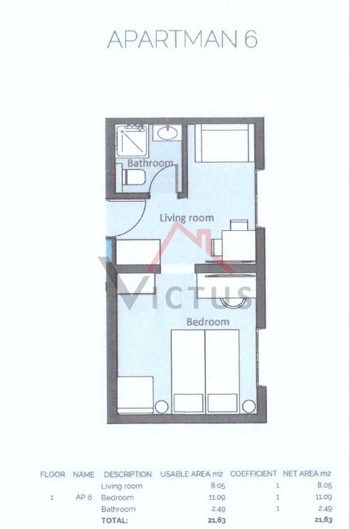 В здании доступны к продаже несколько квартир различной площади от 14 м² до 30 м². Инвестор находится в системе НДС, поэтому будущий покупатель освобождается от уплаты налога на передачу недвижимости.