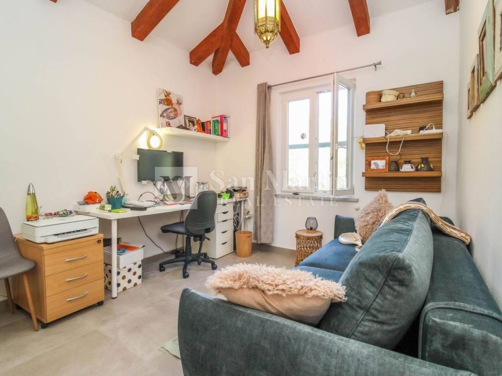 Charming house for sale near Poreč In a quiet and green area, just a few minutes drive from the center of Poreč, a completely renovated house is for sale, a cozy house with a garden. Main features: • Spacious living and dining room (43 m²) with high ceilings, wooden beams and a wood-burning fireplace - the perfect place for family gatherings • Equipped separate kitchen • Two bedrooms with high ceilings and authentic details • Mezzanine (17.5 m²) currently used as an office, with the possibility of converting into an additional bedroom • Covered terrace (15 m²) ideal for enjoying the outdoors • Private parking • Front and back gardens with a Mediterranean atmosphere Additional advantages: • The house is oriented to the southwest, sunny throughout the day • Heating and cooling provided by air conditioning and a fireplace • Located in the immediate vicinity of olive groves, which offers a beautiful view and a sense of peace • Surrounded by nature - ideal for lovers of walking and cycling Location: A perfect combination of peace and privacy, yet close to all amenities. The beach and the center of Poreč are a few minutes' drive away. This property represents an excellent opportunity for a family home, vacation home or as an investment for tourist rentals. ID CODE: 1013 San Martin nekretnine Mob: 00385 91 556 2470 Tel: +385 91 556 2470 E-mail: toni@sanmartin-realestate.com www.sanmartin-realestate.com