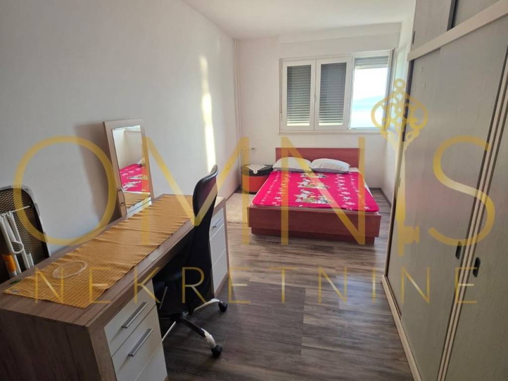 Stan se ističe vrlo sunčanom atmosferom i prekrasnim pogledom na more, što dodatno doprinosi osjećaju ugode i prostranosti. Prostor je opremljen kuhinjom s aparatima, perilicom posuđa, perilicom rublja, televizorom i radnim stolom, što olakšava svakodnevni život i omogućuje ugodan boravak.