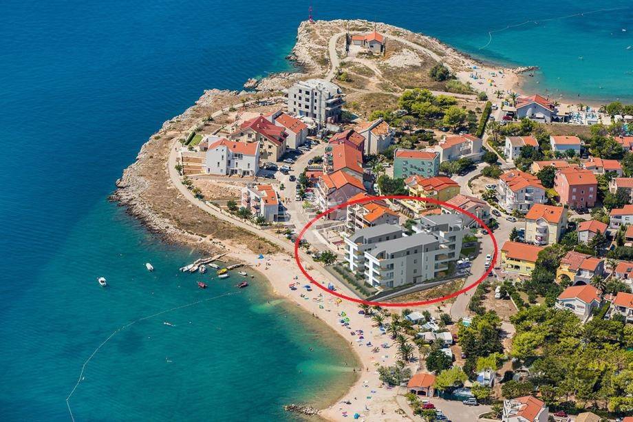 ОСТРОВ ПАГ-ПОВЛЯНА-ЛЮКСОВЫЕ АПАРТАМЕНТЫ Продается двухкомнатная квартира с садом в новостройке.