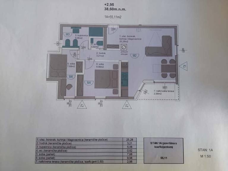 Predstavljamo vam jedinstveni projekt u srcu naselja Kaštanjer u Puli, čija izgradnja uskoro započinje. Ovi vrhunski stanovi predstavljaju idealan spoj kvalitete, udobnosti i atraktivne lokacije, što ih čini savršenim mjestom za život u jednom od najtraženijih dijelova grada.Stan 2A smješten je na prvom katu i prostire se na 55,11 m2. Osmišljen je tako da zadovolji potrebe suvremenog života, s dnevnim boravkom, kuhinjom i blagovaonicom u otvorenom konceptu iz kojih se izlazi na natkrivenu terasu. Stan nudi dvije spavaće sobe, kupaonicu i wc, dok mu dodatnu vrijednost daje parkirno mjesto u podzemnoj garaži površine 13,75 m2.Zgrada se gradi prema visokim standardima, a budući stanari imat će na raspolaganju podzemnu garažu povezanu panoramskim liftom, podno grijanje na vodu koje se zagrijava plinskim bojlerom, klima uređaje te priključak na gradski plin. Sve to jamči maksimalnu udobnost i energetsku učinkovitost.Lokacija je jedan od najvećih aduta ovog projekta. U neposrednoj blizini nalaze se škola, vrtić, bolnica i trgovački centri, a zahvaljujući izvrsnoj prometnoj povezanosti omogućen je brzi izlazak iz grada. Povijesna Arena udaljena je svega 750 metara.Ovaj projekt nudi priliku za sigurno ulaganje i uživanje u modernom stanovanju na odličnoj lokaciji.Za više informacija ili dogovor oko razgleda, slobodno nam se obratite.