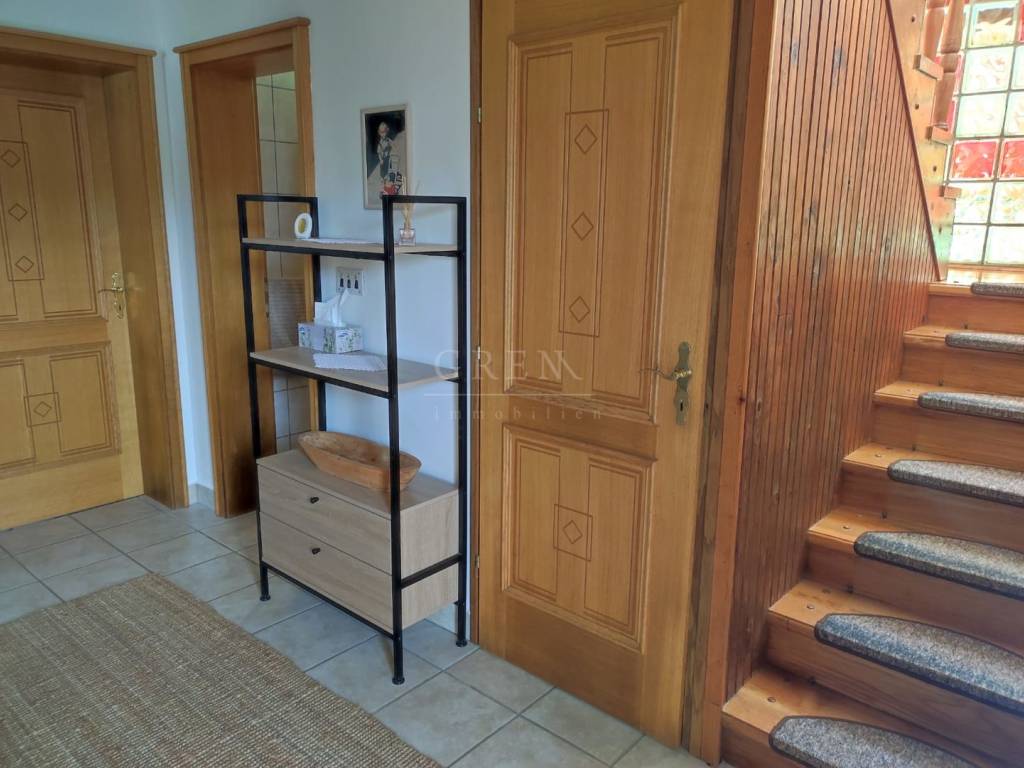 Na katu se nalazi kuhinja sa blagovaonom, veliki dnevni boravak koji se proteže kroz dvije prostorije i ima izlaz na veliku terasu, spavaća soba i kupaona. Potkrovlje nije uređeno.