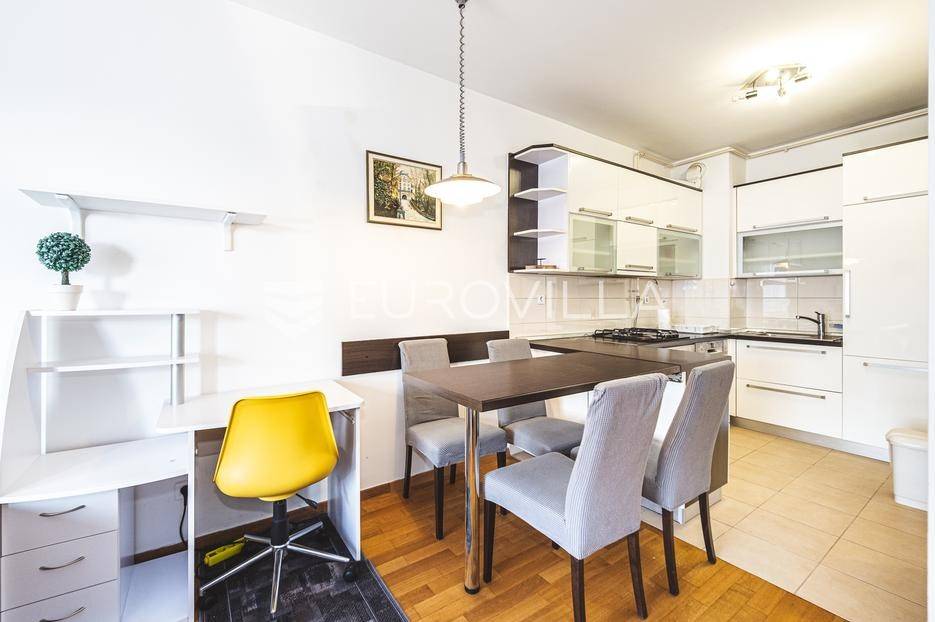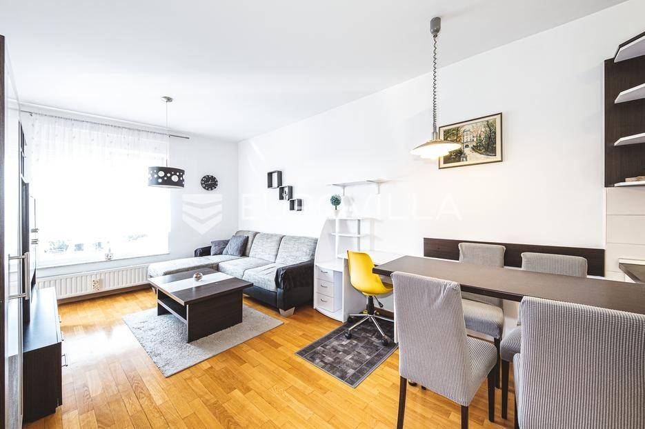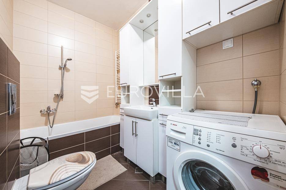 Zagreb, ZAVRTNICA, iznajmljuje se lijepo uređen dvosoban stan na 5. katu novije i održavane zgrade s liftom.Stan se sastoji od ulaznog prostora iz kojeg desno ulazimo u potpuno opremljenu kupaonicu, a ravno u open space dnevni boravak s blagovaonskim dijelom i modernom kuhinjom koje odvaja praktičan kuhinjski otok. Iz dnevnog boravka izlazimo na balkon zapadne orijentacije koji ima prekrasan pogled na naselje te Zagrebačku katedralu u daljini. Spavaća soba opremljena je bračnim krevetom i velikim ormarom za pohranu.Stanu pripadaju spremište i privatno garažno parkirno mjesto na etaži -1.Nalazi se na idealnoj, frekventnoj lokaciji, u neposrednoj blizini autobusnog kolodvora i tramvajskih linija, iznimno dobro povezan s ostatkom grada. U blizini se nalaze trgovine, kafići, ljekarne i sve potrebno za lagodan život.Za ostale informacije stojimo na raspolaganju.
