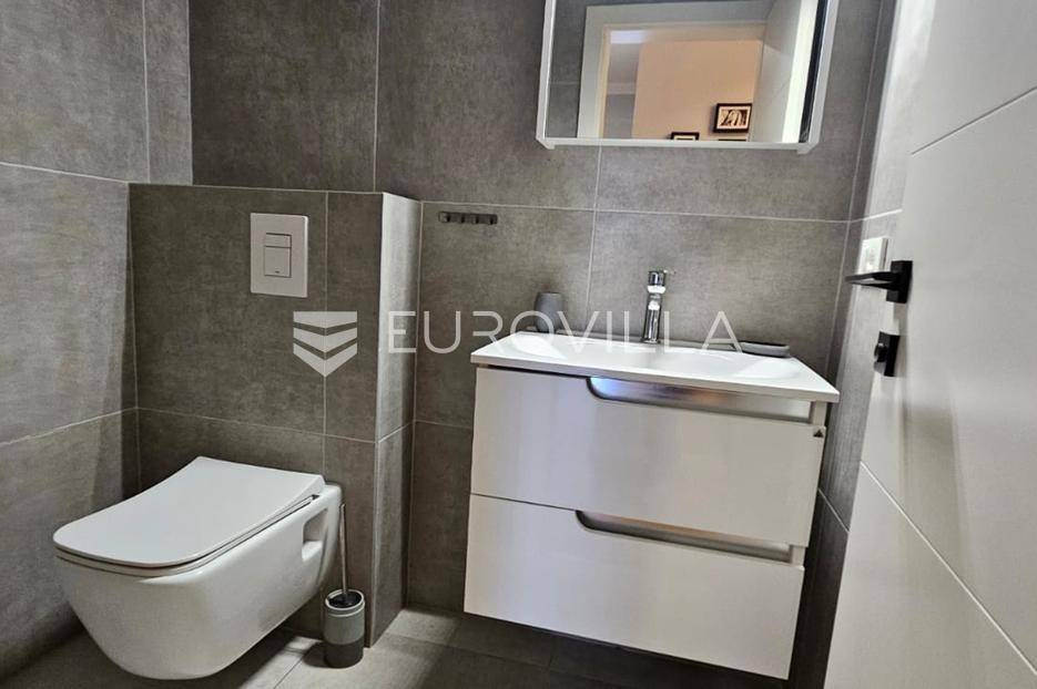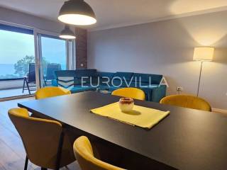 U mirnom i uređenom dijelu Kastva, u naselju Rešetari, nalazi se suvremeno uređen dvosoban stan u kvalitetnoj novogradnji, s otvorenim pogledom na more. Ovaj elegantan i funkcionalan stan idealan je kako za svakodnevni život, tako i kao investicija.Stan se sastoji od prostranog dnevnog boravka s kuhinjom i blagovaonicom, dvije udobne spavaće sobe - od kojih jedna raspolaže vlastitim walk-in ormarom, te moderno opremljene kupaonice i wc-a. Posebnost ovog stana je velika lođa sa staklenom ogradom, koja pruža prekrasan panoramski pogled na more i okolicu. Iz svih prostorija stana - dnevnog boravka i obje spavaće sobe - moguć je direktan izlaz na lođu, što prostoru daje dodatnu povezanost s vanjskim okruženjem.Stan je orijentiran isključivo prema jugu, što mu osigurava obilje prirodne svjetlosti tijekom cijelog dana. Izolacija je vrhunska - prozori su opremljeni troslojnim staklom punjenim s tri vrste plina, što značajno doprinosi energetskoj učinkovitosti i udobnosti.Interijer je opremljen visokokvalitetnim materijalima: keramičke obloge su prvoklasne, podovi prekriveni kvalitetnim parketom, a kuhinja i kupaonica opremljene su vrhunskim aparatima marki Bosch i Samsung.Stan je kompletno namješten i opremljen te je odmah useljiv - bez potrebe za dodatnim ulaganjima.Zgrada ima lift, a stanu pripadaju dva parkirna mjesta na vanjskoj površini, što je velika prednost u svakodnevnom životu.Smješten u izuzetno mirnoj poziciji, stan pruža savršen balans između privatnosti i blizine svih važnih sadržaja - u neposrednoj blizini nalaze se trgovine, škole, vrtići i javni prijevoz.Za više informacija ili razgledavanje, slobodno nas kontaktirajte.