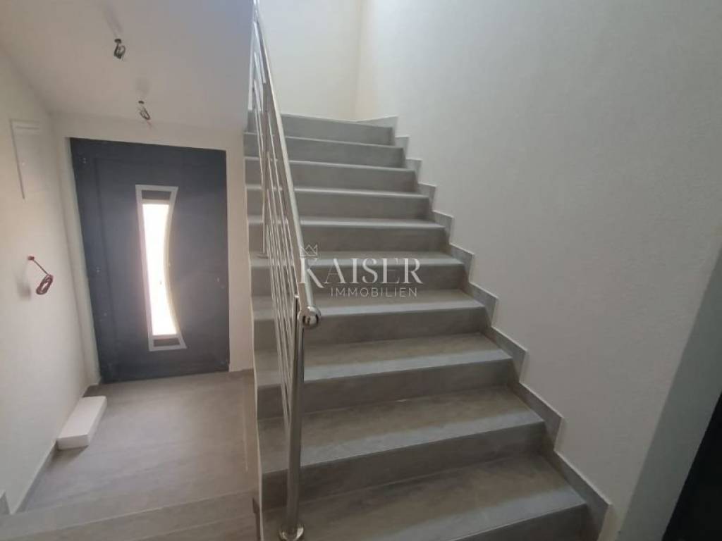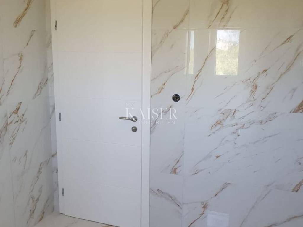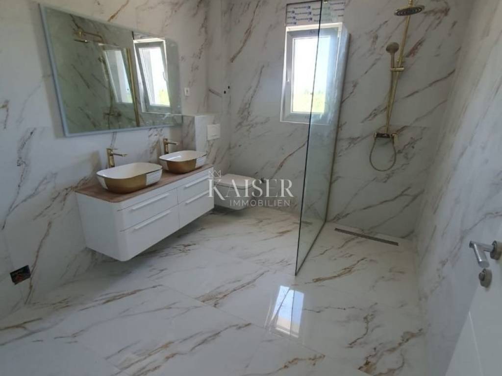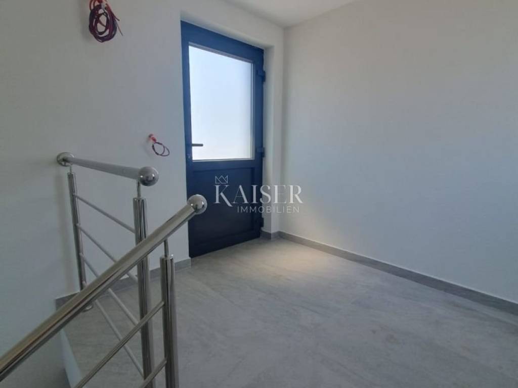 Kaiser Immobilien offers an apartment marked S3, located on the first floor of a modern building with a total of four apartments and a roof terrace. The building is located in Privlaka, just 150 meters from the sandy beach - in a location that combines peace, privacy and proximity to the sea. The building project was designed with an emphasis on construction quality and living comfort. The entire building consists of four apartments, and the courtyard is divided into two separate driveways for greater privacy: apartments S1 and S2 use one entrance, while apartments S3 and S4 use the other entrance. The entire building is insulated with 10 cm of polystyrene, the entrance door is made of aluminum in anthracite color, with an electric lock and video intercom, while the hallways and staircases are paved with class I ceramics with a stainless steel railing. The hallways and staircases are equipped with fire protection equipment and devices for the safety of tenants. Each apartment has an anti-burglary and fireproof entrance door, and LED lighting is installed in all rooms. Internet and satellite television are installed in the living room and bedrooms. The floors in the kitchen, living room and terrace are covered with first-class ceramic tiles, while the bedrooms have SPC flooring. The PVC joinery is anthracite on the outside, white on the inside, with triple-glazed windows, electric shutters and built-in mosquito nets. The rooms are heated and cooled by Vaillant air conditioning, and the bathroom has additional underfloor heating. The bathroom is equipped with first-class tiles, modern furniture, double sinks, a wall-mounted toilet, a built-in cistern and a walk-in glass wall. The balconies have half a brick fence, while the other half is glass. Apartment S3 – first floor with roof terrace The apartment marked S3 has a net area of 92.15 m2 and consists of: kitchen with dining room and living room – 28.20 m2 hallway – 5.70 m2 bathroom – 7.10 m2 bedroom 1 – 12.20 m2 bedroom 2 – 10.80 m2 covered terrace – 14.8 m2 (calculated 7.40 m2) roof terrace – 83.0 m2 (calculated 20.75 m2) The large roof terrace of 83 m2 offers a spectacular view of the sea and is equipped with connections for a jacuzzi, barbecue and an outdoor sink with hot and cold water, making it an ideal place for relaxation and socializing. The apartment includes: two parking spaces The apartment is sold unfurnished, except for a fully equipped bathroom. The apartment marked S3 is a perfect choice for family life, as well as for a vacation or investment in tourism. Proximity to the beach, large roof terrace with views and amenities, two parking spaces, quality construction and modern equipment make this property a safe and long-term investment. Proximity to amenities: Privlaka – Nin: 5 km Privlaka – Zadar: 20 km Privlaka – Zadar Airport: 32 km Distance to larger cities: Privlaka – Ljubljana: 358 km Privlaka – Budapest: 640 km Privlaka – Munich: 764 km Privlaka – Vienna: 651 km Privlaka – Prague: 925 km The agency commission for the buyer is 3% + VAT and is paid in the case of purchasing a property, upon conclusion of the first legal act. ID CODE: 128-69 ???? For more information, please contact: Nina Fabijan Tel: +385 95 504 6197 | Email: nina@kaiser-immobilien.hr