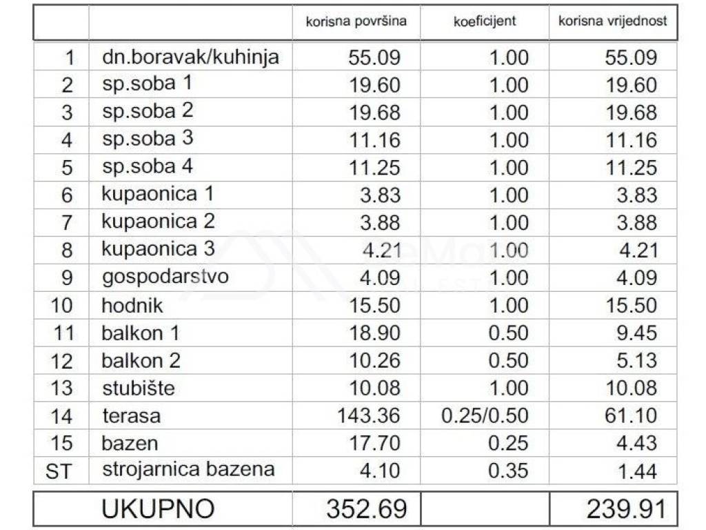 The internal living area is 158.36 m2, and the total net value of the usable area of the apartment with all its accessories is 265.06 m2.