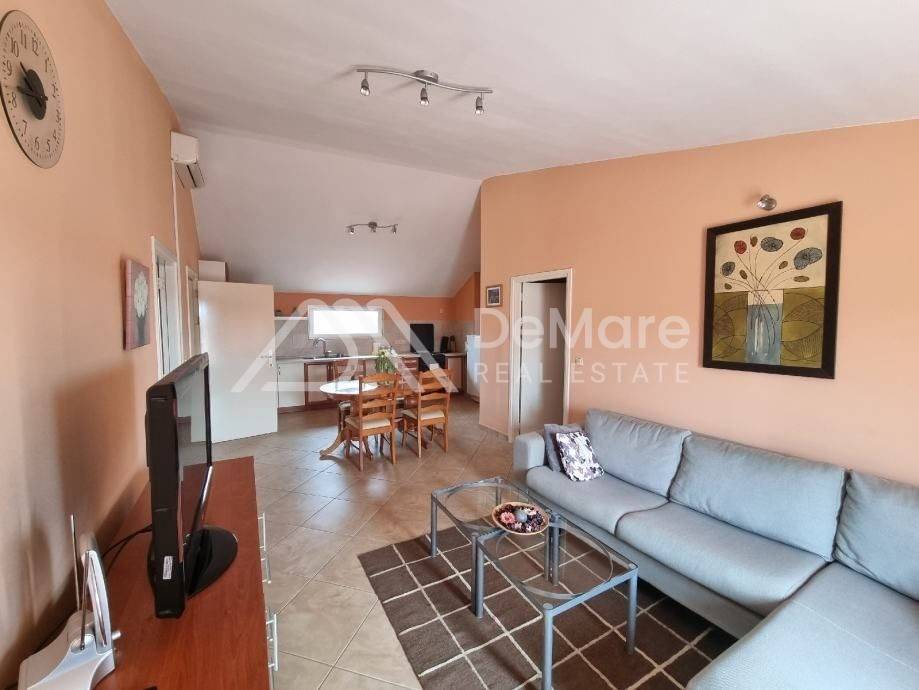 In Polača, in a quiet and green environment, a beautiful furnished family house with two residential units, total area of 240 m2, is for sale. The house is fully furnished, equipped and maintained, and consists of a ground floor and an upper floor. On the ground floor there is an apartment with a living room, kitchen, dining room, hallway, bathroom and two bedrooms.
