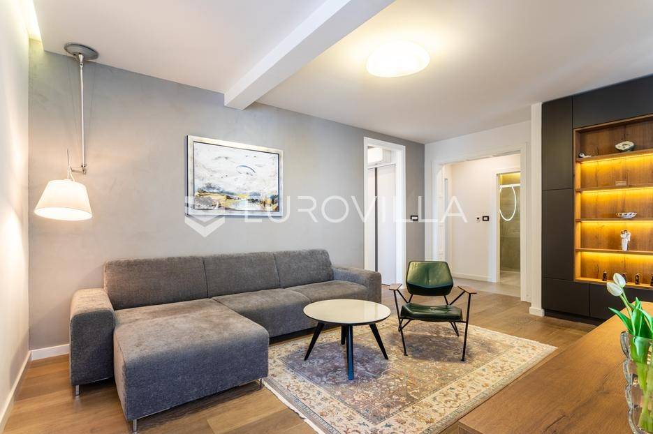 Ekskluzivna ponuda Euroville - centar Splita, ulica Ljudevita Posavskog.Predstavljamo stan smješten na 6. katu (predzadnji kat) zgrade s liftom, zapadne orijentacije, ukupne NKP 124,56 m².Stan se sastoji od ulaznog hodnika, kuhinje s blagovaonicom, prostranog dnevnog boravka s izlazom na djelomično natkrivenu terasu, tri spavaće sobe (od kojih jedna s vlastitom kupaonicom), dodatne kupaonice te ostave/praonice. S terase se pruža otvoren pogled na Marjan, grad i djelomičan pogled na more. Na terasi su provedeni voda i struja, što omogućava uređenje vanjske kuhinje.Stan je kompletno moderno opremljen i namješten, s kvalitetnim parketom i vrhunskom keramikom, dok je u kupaonicama izvedeno podno grijanje. Sve prostorije klimatizirane, što osigurava maksimalnu udobnost.Nekretnini pripada terasa od 27,37 m², dupla zatvorena garaža površine 27,76 m2 s ostavom. Lift iz garaže vodi do kata stana, što predstavlja dodatnu udobnost i sigurnost.Stan je renoviran 2017. godine, bez dodatnih ulaganja, odmah useljiv.Lokacija u ulici Ljudevita Posavskog osigurava mirno i ugodno stanovanje, a ujedno blizinu svih sadržaja koje pruža centar Splita. Ovakva nekretnina predstavlja rijetkost na tržištu, dodatno naglašena pogodnošću dva zatvorena garažna mjesta.Za više informacija i dogovor oko razgleda, slobodno nas kontaktirajte.