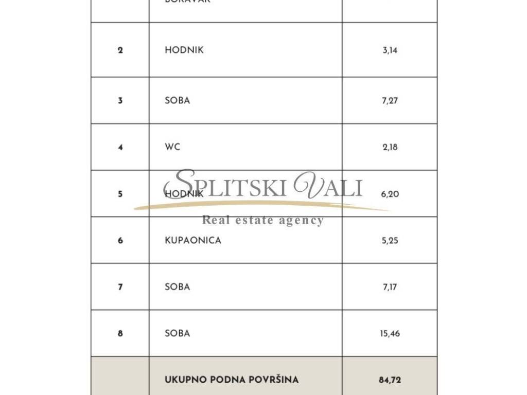 Ekskluzivno posredujemo u prodaji više stambenih jedinica u novonastajućem kvartu smještenom na atraktivnoj lokaciji na Duilovu.Ovaj projekt nudi modernu arhitekturu, visokokvalitetne materijale i pažljivo osmišljene stambene jedinice koje zadovoljavaju sve potrebe suvremenog stanovanja.Lokacija pruža idealno mjesto za obiteljski život, s blizinom svih potrebnih sadržaja kao što su škole, vrtići, trgovine i javni prijevoz. Uz to, prekrasan pogled na more i prirodu čini ovaj projekt savršenim izborom za one koji traže miran i ugodan životni prostor.Ovaj projekt ponosno ističe inovativnu arhitekturu sa dosad neviđenim dizajnom pročelja koja su pažljivo izvedena kako bi ponudila ne samo funkcionalnost, već i estetsku privlačnost.Svaka zgrada ima podzemnu etažu u kojima su smještena parkirna mjesta. Izlaz i ulaz u podzemnu garažu nalazi se na sjevero-istočnoj strani objekta. Također zgrada ima dizalo iz podzemne garaže pa sve do nadgrađa. Energetski certifikat zgrada je projektiran za A+ razred.Koncept interijera predstavlja savršen spoj modernog dizajna i prirodnih materijala, stvarajući prostor koji je istovremeno elegantan i ugodan za život.U ponudi imamo više stanova različite kvadrature, orijentacije i cijene.Završetak gradnje očekuje se sredinom 2027. godine, a plaćanje je u fazama.ZGRADA "Orišac 2"-STAN 11Stan 11 nalazi se na razini visokog prizemlja te se prostire na 107,58 m2 netto površine, 84,72 m2 unutarnje površine.Sastoji se od hodnika, dnevnog prostora s kuhinjom i blagovaonicom,kupaonice,WC-a, tri spavaće sobe te prostranog balkona od 45,71 m2.Za razgovor o samom projektu te o ponudi stanova lijepo vas molimo kontaktirajte nas na +385 993202222 (Antea).Kupac plaća agencijsku proviziju.Razgled nekretnine moguć je isključivo uz potpisani Ugovor o posredovanju, a što je u skladu sa Zakonom o zaštiti podataka i Zakonom o posredovanju i prometu nekretninama.