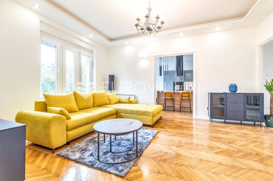 Prostran trosoban stan ukupne površine 101,7 m², smješten na drugom katu uredno održavane zgrade na atraktivnoj lokaciji na Medveščaku.