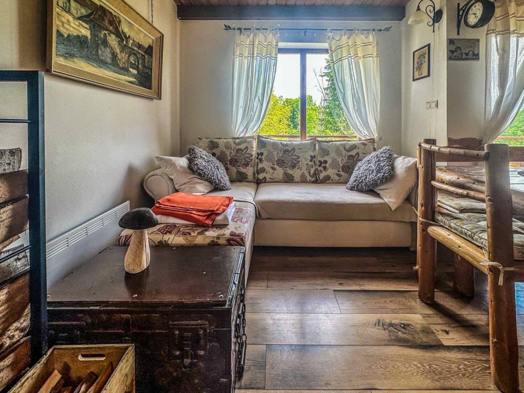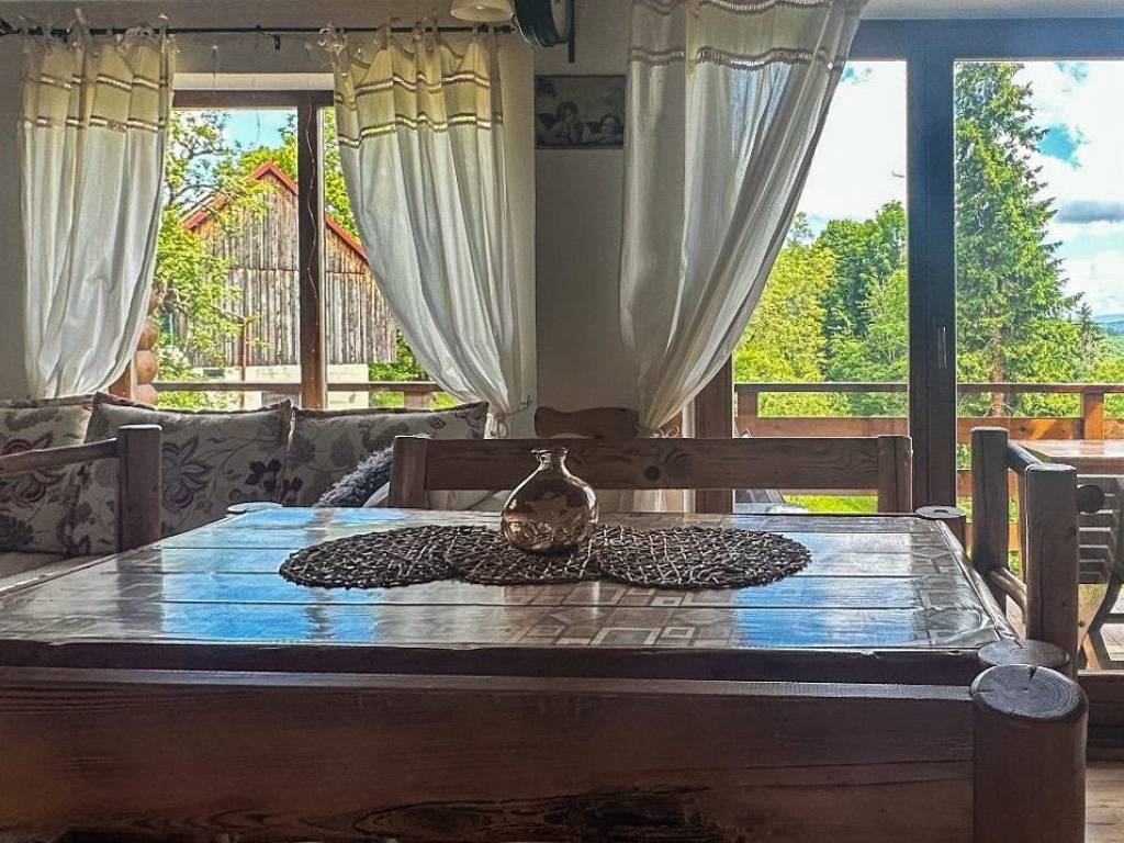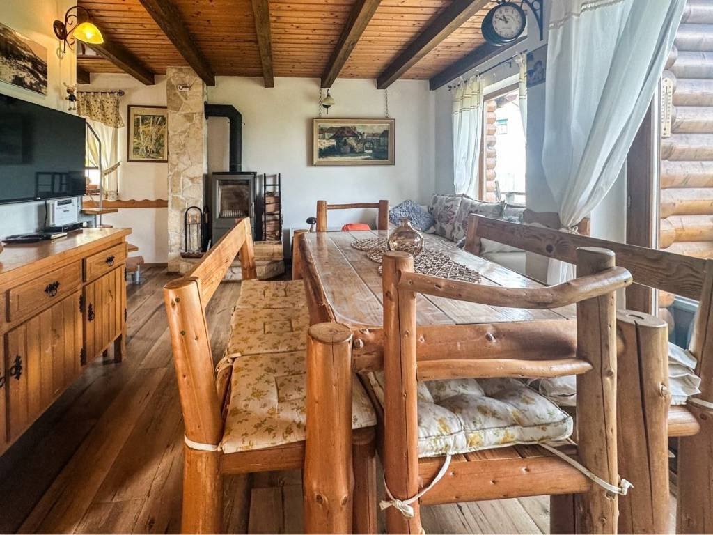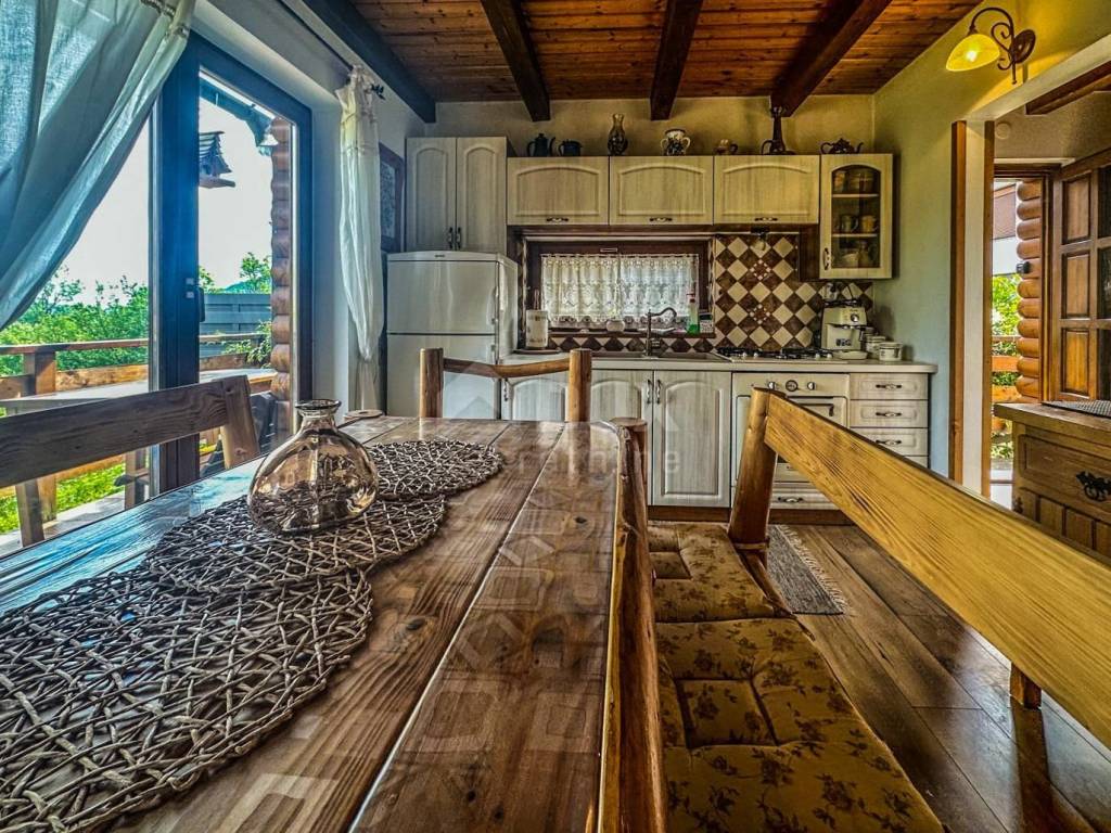 U manjem naselju u blizini Skrada smještena je kuća za odmor površine 75 m², koja svojom toplinom i uređenjem nudi pravi bijeg od gradske vreve. Na prizemlju se nalazi kuhinja povezana s dnevnim boravkom iz kojeg se izlazi na balkon s pogledom na zelenilo, a tu je i kupaonica. Potkrovlje je osmišljeno kao otvoreni prostor s dva bračna kreveta odvojena pregradom, dodatnim ležajem, manjom kupaonicom i balkonom, što omogućuje udoban boravak više osoba. Kuća se prodaje potpuno opremljena i odmah spremna za korištenje, bilo kao vikend kuća za privatne potrebe ili kao turistička nekretnina s potencijalom za iznajmljivanje. Suteren trenutno služi kao spremište za drva, ali uz malo mašte može postati dodatna vrijednost - prostor za saunu, kućnu teretanu ili kutak za opuštanje.