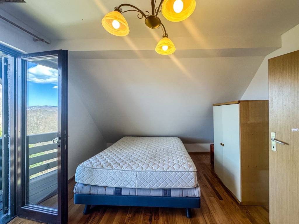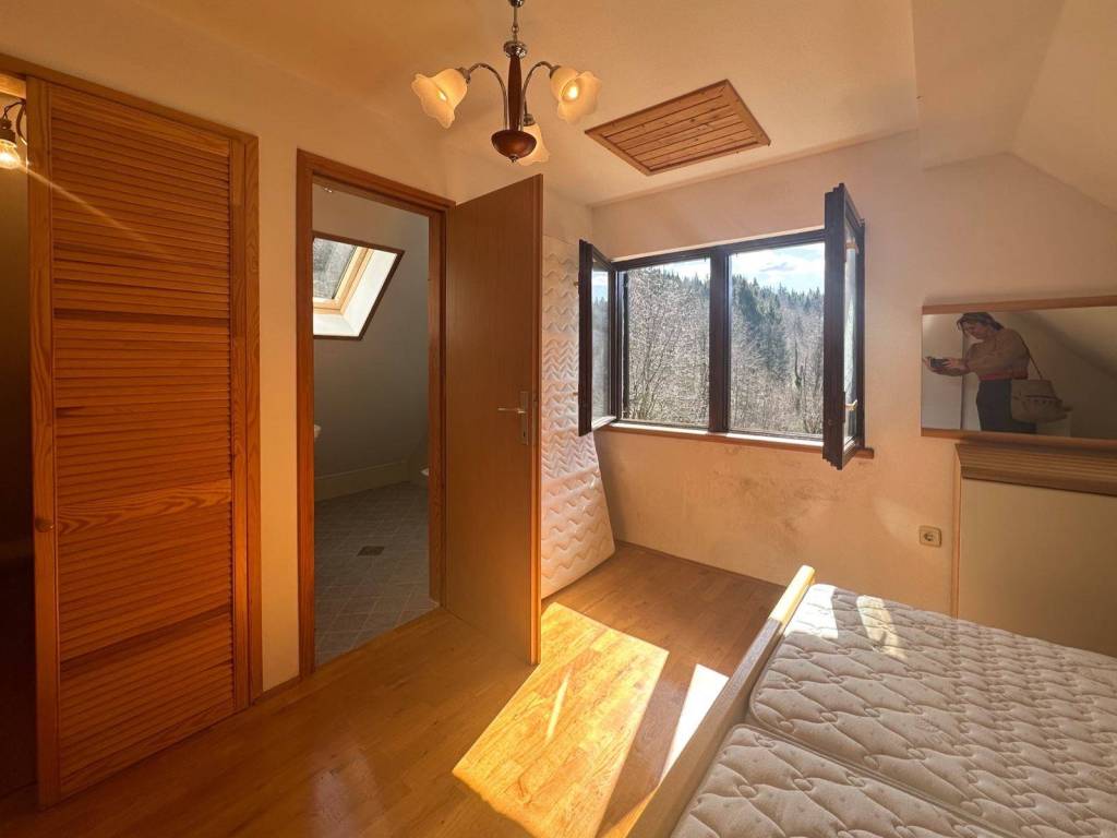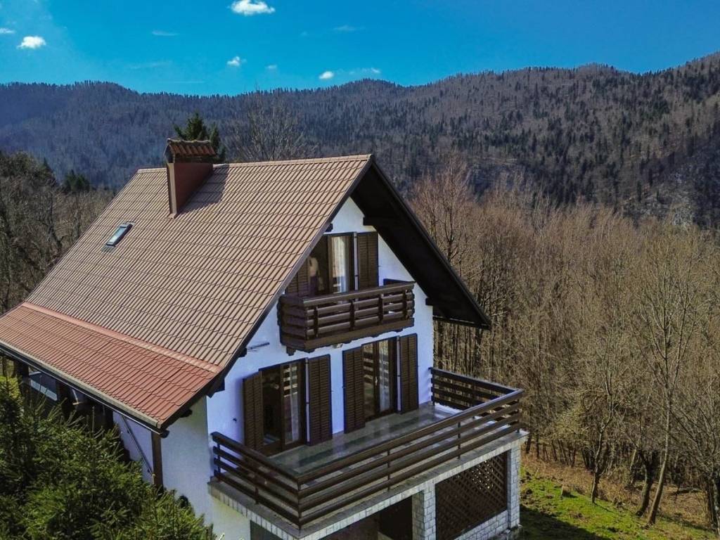 Nekretnina se prostire na tri etaže s potkrovljem: u prizemlju su garaža, konoba i natkrivena terasa, na prvom katu potpuno nova kuhinja, kupaonica i prostrani dnevni boravak s kaminom te velika terasa s pogledom na Julijske Alpe, dok su na drugom katu dvije spavaće sobe, garderoba i balkon, a potkrovlje nudi mogućnost dodatne adaptacije. Građena u kombinaciji kamena i drva te opremljena centralnim grijanjem na drva, kuća spaja toplinu doma s prirodnim ugođajem planine.