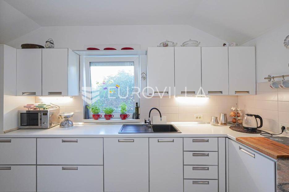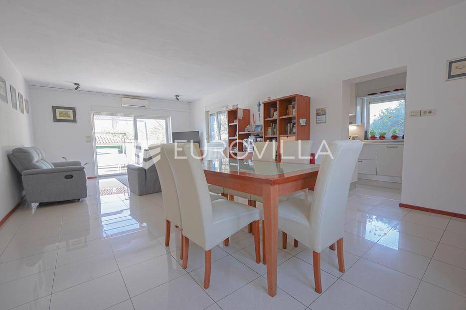 Zadar, Bokanjac, prostrana obiteljska kuća s velikim dvorištem nalazi se na zemljištu površine 686 m2 i nudi savršen spoj udobnosti, funkcionalnosti i privatnosti.Ova nekretnina površine 376 m2 sastoji se od podruma, prizemlja i prvog kata te potkrovlja.Na prizemlju smještena je kuhinja, blagovaonica, dnevni boravak, spremište, praonica, WC, hodnik te unutarnja konoba.Unutarnjim stubištem dolazi se na kat gdje su smještene tri sobe s vlastitim kupaonicama od kojih jedna soba ima privatnu terasu.Kat dodatno sadrži garderobu i prostor za druženje.Dvorište je uređeno i ograđeno, s vanjskim roštiljem i dodatnim spremištem.Na raspolaganju je 7 parkirnih mjesta od kojeg su dva garažna.Kuća ima centralno grijanje na lož ulje te pet klima uređaja. Prozori su PVC s roletama i dvoslojnim staklom. Podovi su obloženi pločicama i laminatom, a dimnjak je također ugrađen.Istaknuli bi da je u jednoj od vanjskih prostorija napravljena priprema za bazen.Za sve ostale informacije stojimo Vam na raspolaganju.