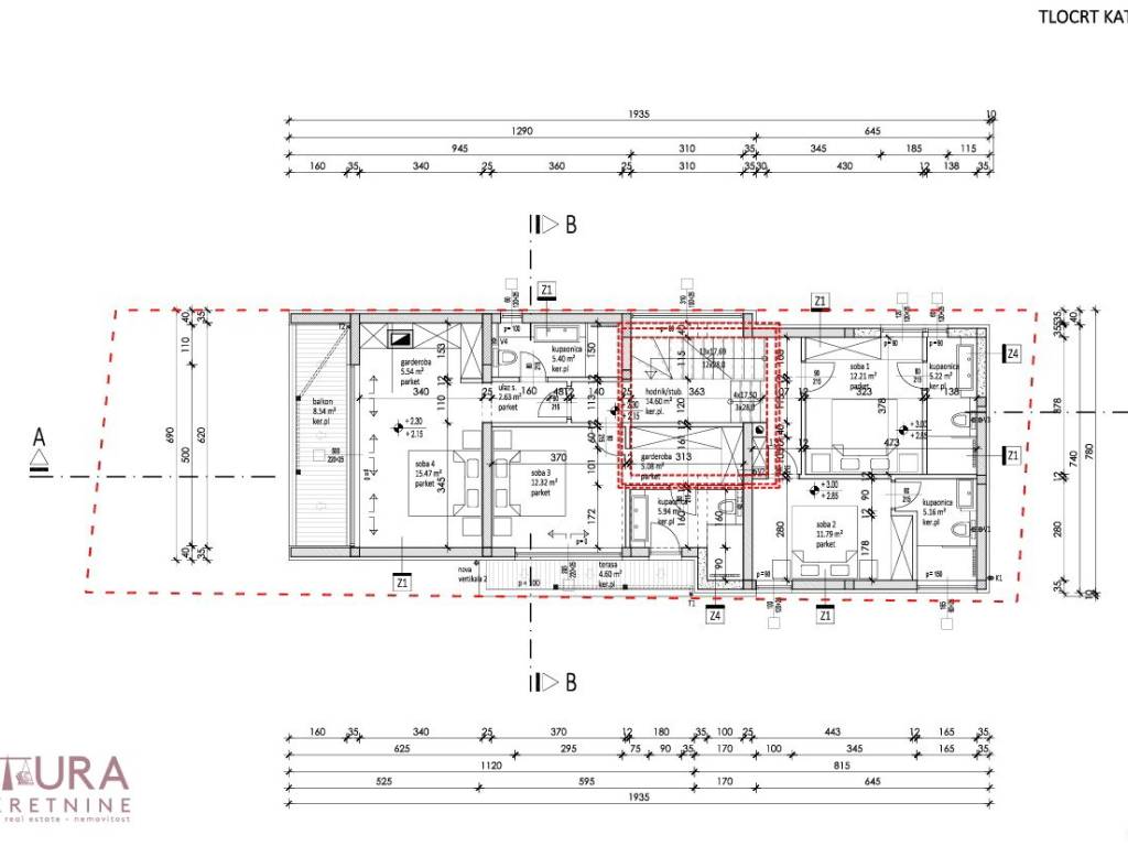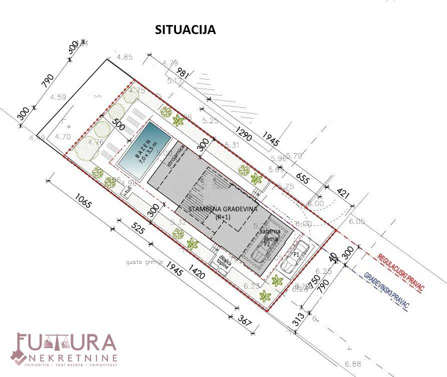 Задар - Затон, продается отдельно стоящий двухэтажный дом с жилой площадью 223,23 м2 и участком 293 м2, построенный в 2025 году на земельном участке площадью 468 м2, высококачественное строительство.
