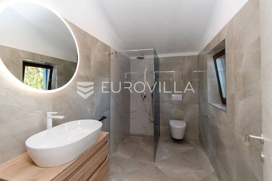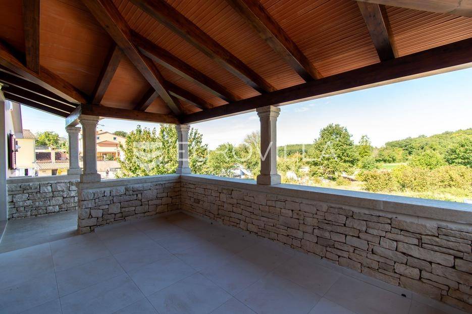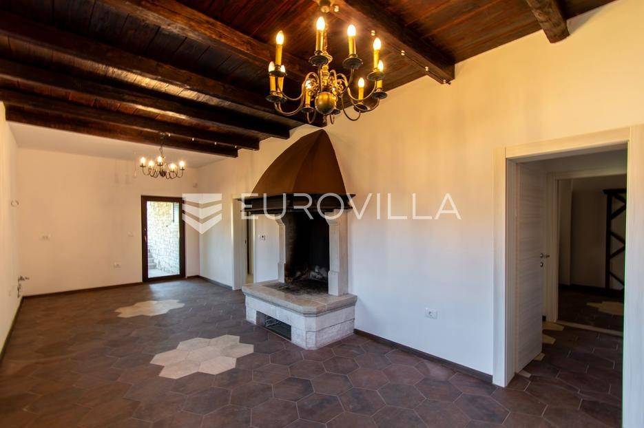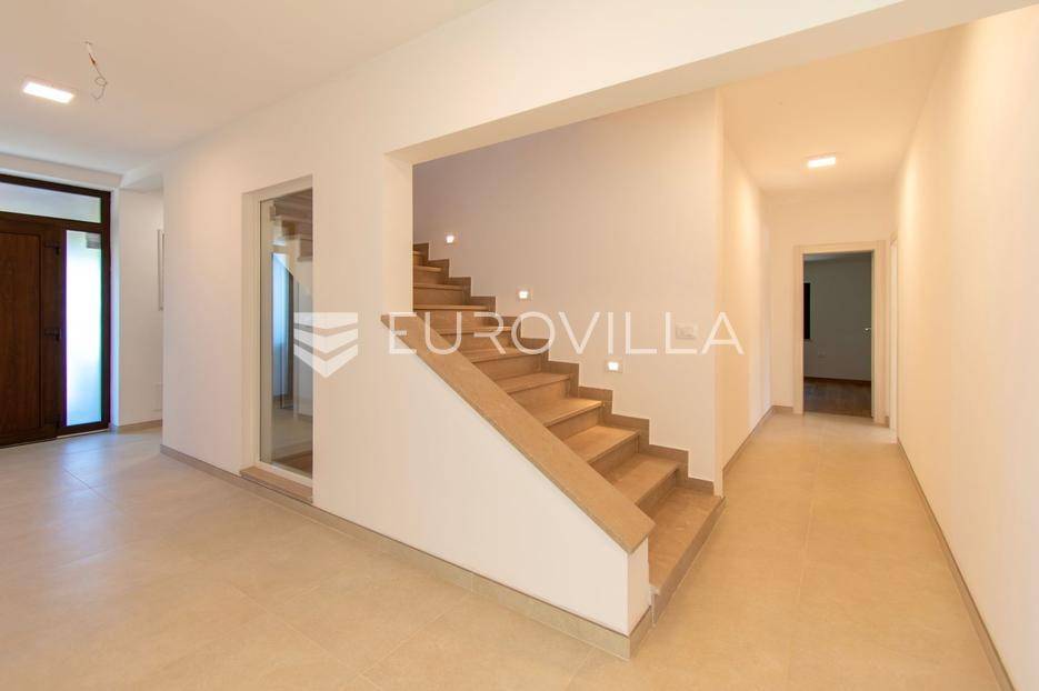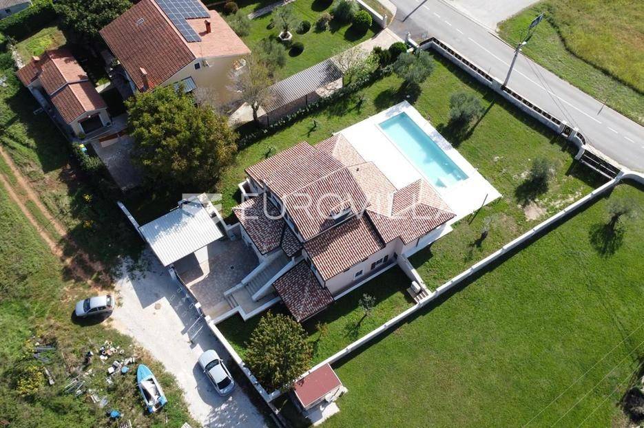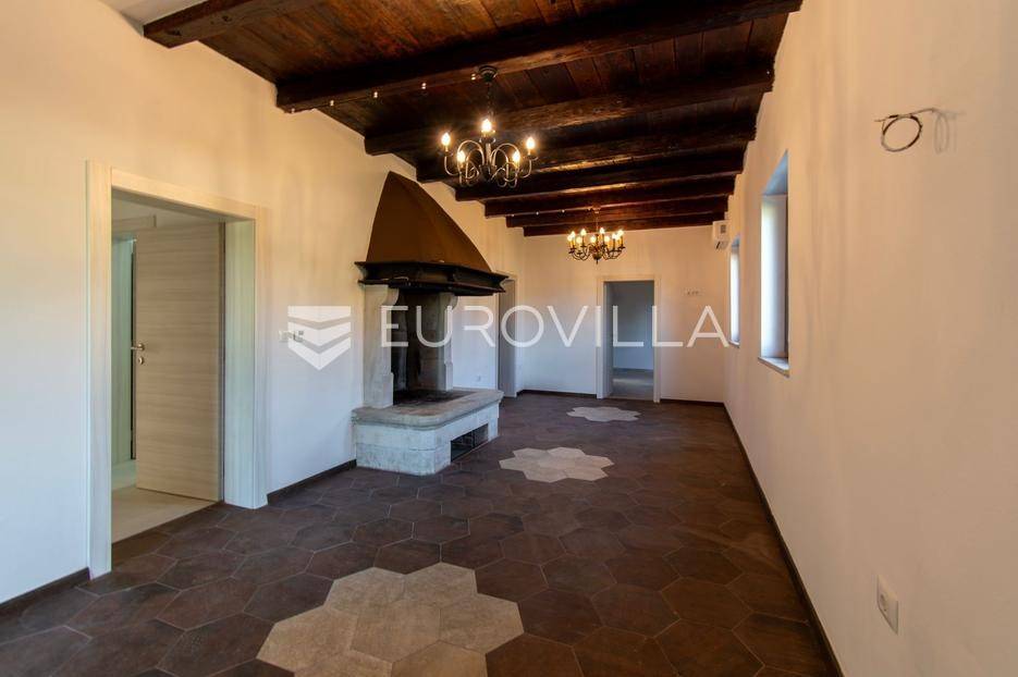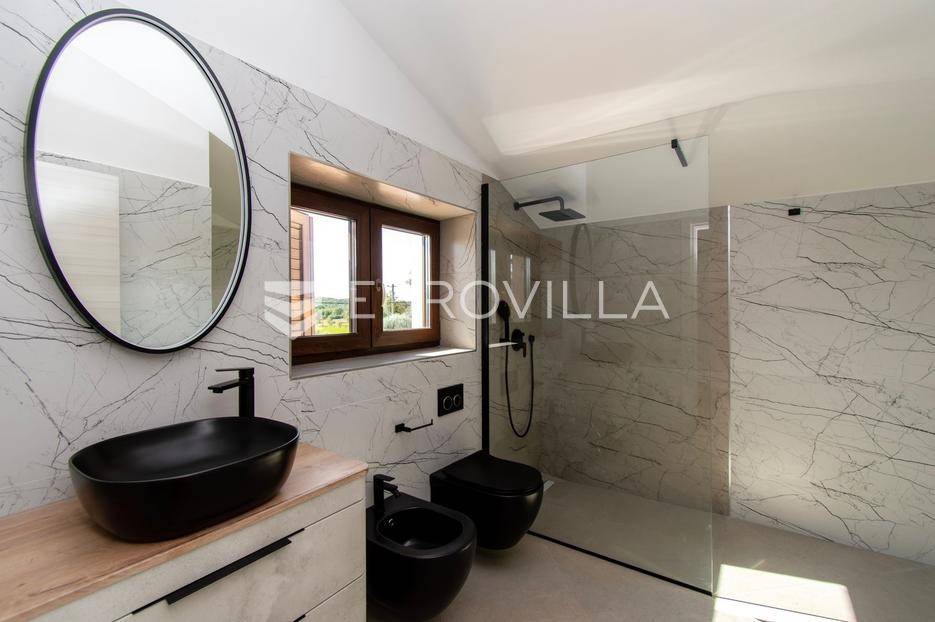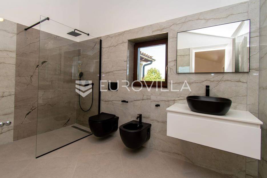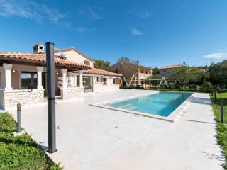 Predstavljamo Vam iznimnu priliku za posjedovanje prekrasne kamene vile, smještene u mirnom istarskom naselju Flengi, nedaleko od Svetog Lovreča. Ova impresivna nekretnina površine 550 m2, na parceli od 1280 m2, idealna je za one koji traže spoj tradicionalnog šarma i suvremenog komfora. S planiranom zadnjom renovacijom 2025. godine, vila nudi besprijekoran dizajn i visoki standard kvalitete.Vila se prostire na više etaža, nudeći prostran i funkcionalan raspored. Prizemlje je posvećeno uživanju i opuštanju, s prostranim prostorom za druženje, mogućim SPA dijelom koji uključuje teretanu, saunu, jacuzzi, tuš i toalet. Tu je i praktičan vešeraj, tehnička soba, šarmantna konoba s kaminom i izlazom na terasu, te vinarija. Dodatna soba za odmor, s mogućnošću prenamjene, te još jedna kupaonica i toalet, upotpunjuju ovu etažu.Prvi kat vile dočekuje Vas s elegantnim ulaznim prostorom, tri prostrane spavaće sobe, svaka s vlastitom kupaonicom, te otvorenim dnevnim boravkom s direktnim izlazom na terasu i impozantni bazen površine 50 m2. Kuhinja i zajednička kupaonica također se nalaze na ovoj razini. Drugi kat rezerviran je za master spavaću sobu, koja nudi vrhunsku privatnost s privatnim kupatilom i prostranom garderobnom prostorijom, pružajući oazu mira.Kvaliteta gradnje i opreme na najvišoj je razini, s armirano-betonskom konstrukcijom i fasadnom kamenom vunom d=10 cm te završnim slojem silikata, osiguravajući vrhunsku energetsku učinkovitost (certifikat A). Visina stropa od 2,75 m daje osjećaj prozračnosti, dok visokokvalitetna stolarija s trostrukim staklom u boji oraha, žbukano bio žbukom interijera i boja unutarnjih zidova na bazi vapna, stvaraju zdrav i ugodan ambijent. Podovi su obloženi keramikom talijanskog proizvođača NORDIK TILE i hrastovim parketom 1. klase.Vila je opremljena protupožarnim sustavom, DAIKIN dizalicama topline u svim prostorijama s elektronskom regulacijom, te 11 klima uređaja za optimalnu temperaturu tijekom cijele godine. Sigurnost je osigurana video nadzorom, portafonom i alarmnim sustavom. Eksterijer oduševljava s pet parkirnih mjesta (tri natkrivena), dva ulaza u dvorište, te pročeljem kuće, terasama i ogradnim zidovima zidanim kamenom (suhozid) na površini od cca 250-300 m2. Profilirane kamene erte na prozorima, vanjski tuš, osam maslina starosti 60-70 godina i vanjsko navodnjavanje, zaokružuju ovu ekskluzivnu ponudu.Ukoliko želite posjedovati kvalitetnu, modernu vilu udaljenu 10ak minuta od prvih plaža u Vrsaru ili Poreču slobodno nam se obratite - stojimo Vam na raspolaganju.