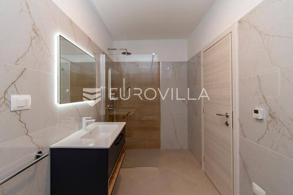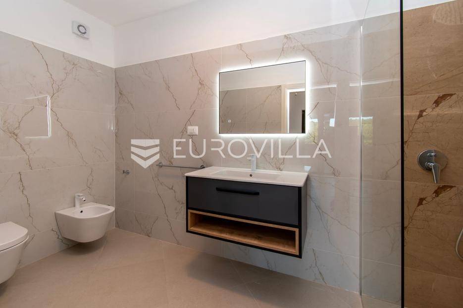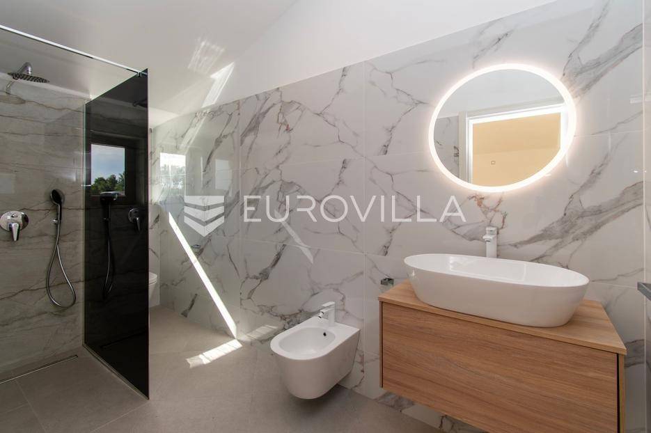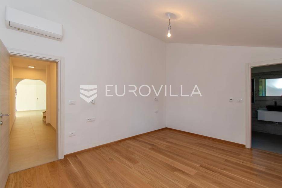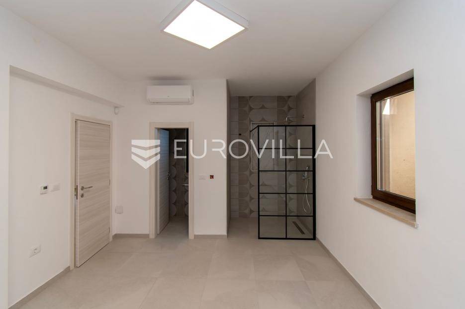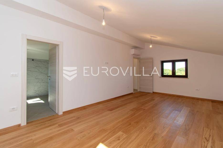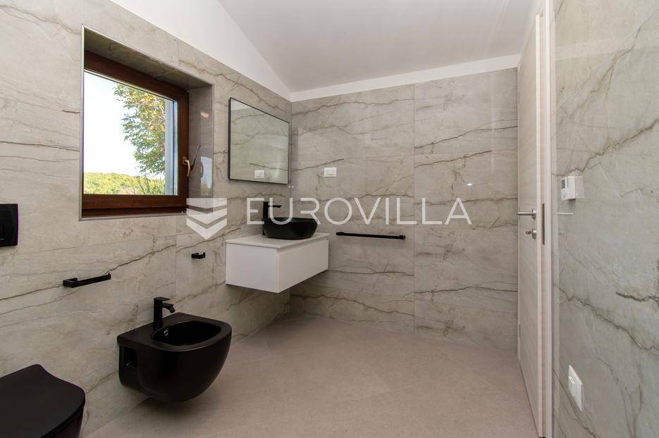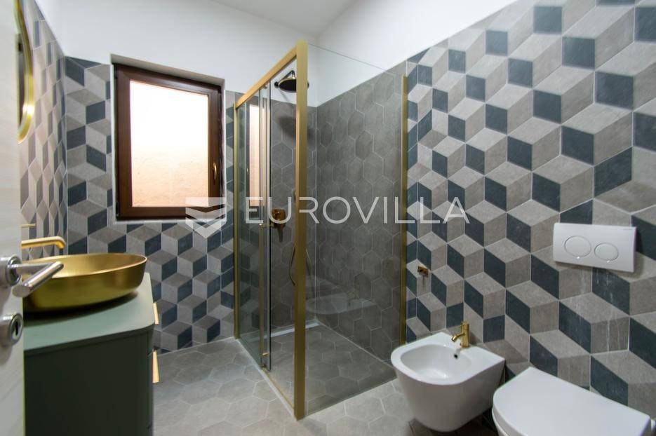 Predstavljamo Vam iznimnu priliku za posjedovanje prekrasne kamene vile, smještene u mirnom istarskom naselju Flengi, nedaleko od Svetog Lovreča. Ova impresivna nekretnina površine 550 m2, na parceli od 1280 m2, idealna je za one koji traže spoj tradicionalnog šarma i suvremenog komfora. S planiranom zadnjom renovacijom 2025. godine, vila nudi besprijekoran dizajn i visoki standard kvalitete.Vila se prostire na više etaža, nudeći prostran i funkcionalan raspored. Prizemlje je posvećeno uživanju i opuštanju, s prostranim prostorom za druženje, mogućim SPA dijelom koji uključuje teretanu, saunu, jacuzzi, tuš i toalet. Tu je i praktičan vešeraj, tehnička soba, šarmantna konoba s kaminom i izlazom na terasu, te vinarija. Dodatna soba za odmor, s mogućnošću prenamjene, te još jedna kupaonica i toalet, upotpunjuju ovu etažu.Prvi kat vile dočekuje Vas s elegantnim ulaznim prostorom, tri prostrane spavaće sobe, svaka s vlastitom kupaonicom, te otvorenim dnevnim boravkom s direktnim izlazom na terasu i impozantni bazen površine 50 m2. Kuhinja i zajednička kupaonica također se nalaze na ovoj razini. Drugi kat rezerviran je za master spavaću sobu, koja nudi vrhunsku privatnost s privatnim kupatilom i prostranom garderobnom prostorijom, pružajući oazu mira.Kvaliteta gradnje i opreme na najvišoj je razini, s armirano-betonskom konstrukcijom i fasadnom kamenom vunom d=10 cm te završnim slojem silikata, osiguravajući vrhunsku energetsku učinkovitost (certifikat A). Visina stropa od 2,75 m daje osjećaj prozračnosti, dok visokokvalitetna stolarija s trostrukim staklom u boji oraha, žbukano bio žbukom interijera i boja unutarnjih zidova na bazi vapna, stvaraju zdrav i ugodan ambijent. Podovi su obloženi keramikom talijanskog proizvođača NORDIK TILE i hrastovim parketom 1. klase.Vila je opremljena protupožarnim sustavom, DAIKIN dizalicama topline u svim prostorijama s elektronskom regulacijom, te 11 klima uređaja za optimalnu temperaturu tijekom cijele godine. Sigurnost je osigurana video nadzorom, portafonom i alarmnim sustavom. Eksterijer oduševljava s pet parkirnih mjesta (tri natkrivena), dva ulaza u dvorište, te pročeljem kuće, terasama i ogradnim zidovima zidanim kamenom (suhozid) na površini od cca 250-300 m2. Profilirane kamene erte na prozorima, vanjski tuš, osam maslina starosti 60-70 godina i vanjsko navodnjavanje, zaokružuju ovu ekskluzivnu ponudu.Ukoliko želite posjedovati kvalitetnu, modernu vilu udaljenu 10ak minuta od prvih plaža u Vrsaru ili Poreču slobodno nam se obratite - stojimo Vam na raspolaganju.