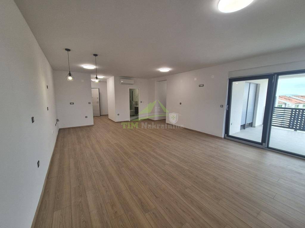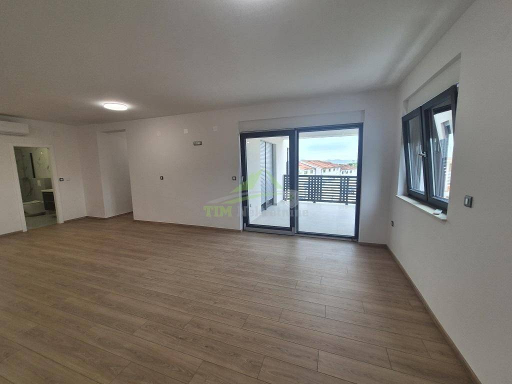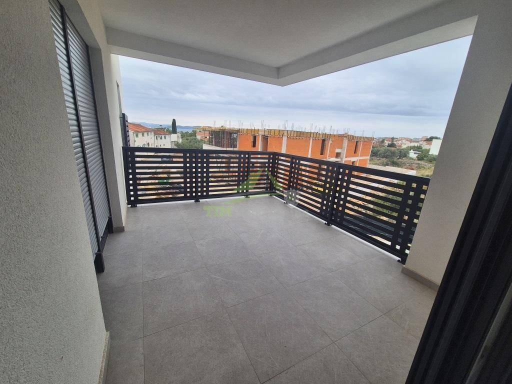 Trosobni stan sa pogledom na more neto površine 82.95 m2; smješten na 1. katu stambene zgrade na predivnoj lokaciji koji pruža sve prednosti za moderan način života, a ujedno blizinu i dostupnost  grada te svih aktivnosti i sadržaja; udaljeno svega 700 metara od mora.Zgrada je projektirana i građena po najnovijim smjernicama za gradnju zgrade; grijanje kao i hlađenje putem klima uređajima u svim prostorijama; podno grijanje u kupaonicama; vrhunska PVC stolarija sa elektro roletama te komarnicima; kvalitetan vodootporan laminat na podovima kao i vrhunska keramika u svim kupaonicama.Stan je prilagođeni modernim trendovima i potrebama obiteljskog stanovanja, osvijetljeni i komforni, gdje je promišljenim projektiranjem i dobro razgrađenim tlocrtima nastao optimalan omjer iskorištenosti prostora i ugodnog boravka.Stanu pripadaju i jedno parkirno mjesto.