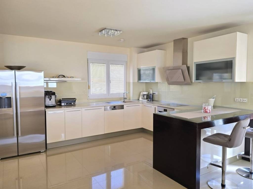 Situated in a prime location near Split, this contemporary villa combines architecture, comfort and elegance. It is arranged over several floors from the basement and ground floor to two residential levels and a rooftop terrace.   The lower floor features a bright space with a playroom, gym and office with a separate entrance. Along with a garage and technical rooms, the level offers functionality and privacy.   The outdoor area of ​​the ground floor is adorned with an infinity pool with mosaic, shower and ambient lighting that creates a special atmosphere.   On the first floor there is a master bedroom with a dressing room and bathroom, as well as two additional bedrooms and a laundry room. The main bathroom has a walk-in shower and a freestanding bathtub.   The second floor connects the living room, dining room and kitchen in an open concept with a large balcony and sea views.   At the top of the villa is a rooftop terrace with a jacuzzi, an outdoor kitchen and a pergola. The terrace offers a panoramic view, ideal for relaxing and socializing.   The villa offers several parking spaces, a carport and a garage with a direct entrance to the house.   This is not just a home, but a space for enjoyment and a harmonious life in contact with nature and modern comfort.
