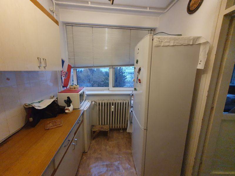 Stan: Novi Zagreb, Sopot, 1-sob, 35,78, 4 kat, nema lift, 140000 €URProdaje se stan u Novom Zagrebu u Sopotu, Ostrogovićeva ulica, u zgradi izgrađenoj 1973. godine bez lifta na zadnjem četvrtom katu zgrade - u naravi 5 kat.Stan se sastoji od ulaznog hodnika, na lijevo je kupaona sa kadom, ravno je prostrana soba/dnevni boravak, lijevo od sobe je kuhinja, a ispred sobe zatvorena loggia, koja je prenamjenjena u manju sobu.Grijanje i topla voda - toplana, plina nema (boca), stolarija je drvena, osim na loggie gdje je PVC.Stan je u prosječnom stanju.Vlasništvo uredno, nema tereta.Besplatan parking ispred zgrade.Zona tremvaja - do tramvaja 5-10 min. pješiceBlizina škole, vrtića, Avenue Malla, Velesajma, Arene i svih drugih sadržaja