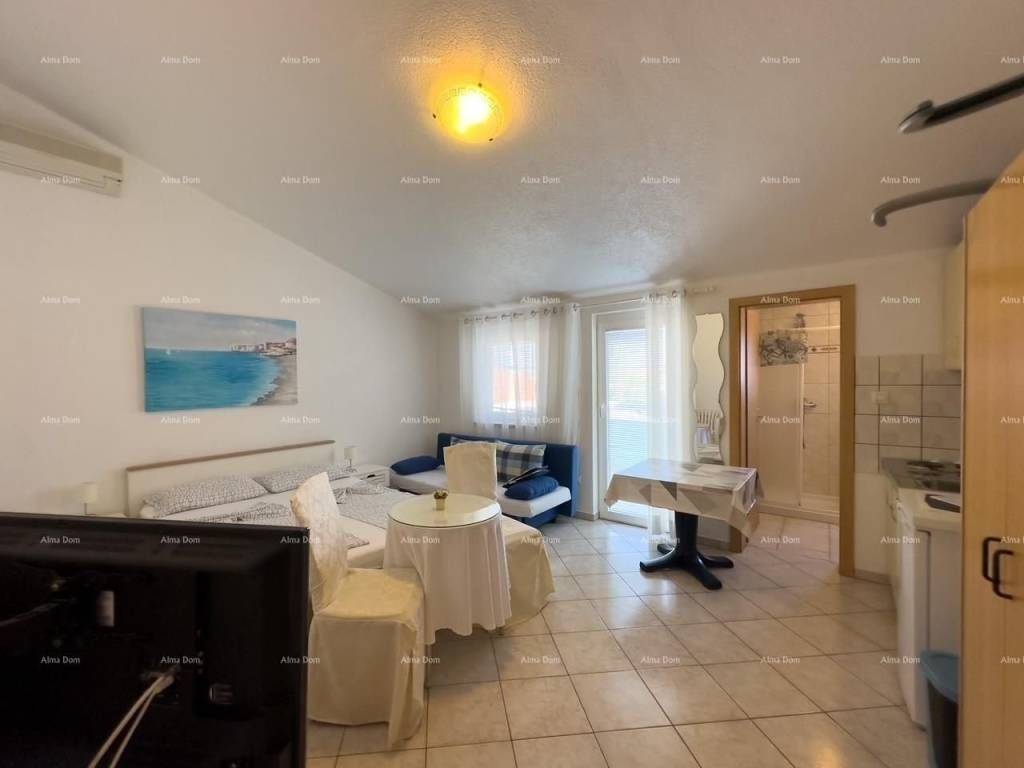We are selling a studio apartment (2) on the second floor of a building in a great location in Medulin!The apartment is located in a house with a total of ten apartments.It consists of a bathroom, one large room with a kitchen, a living room and a bed for sleeping, which leads to a terrace.Air conditioning for heating and cooling, parking in the yard, a shared summer kitchen with a barbecue for all tenants.The house is furnished and is sold as is.For more information, we are at your disposal:Info: Azra Valjevac +385 91 611 5706Email: azra@almadominvest.comwww.almadom.comContact: Gojko Đurković+385 95 4700000Email: gojko@alma-nekretnine.com