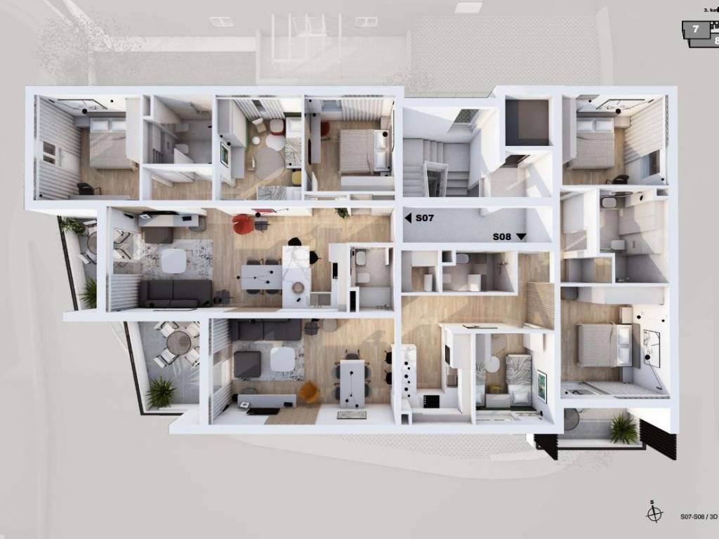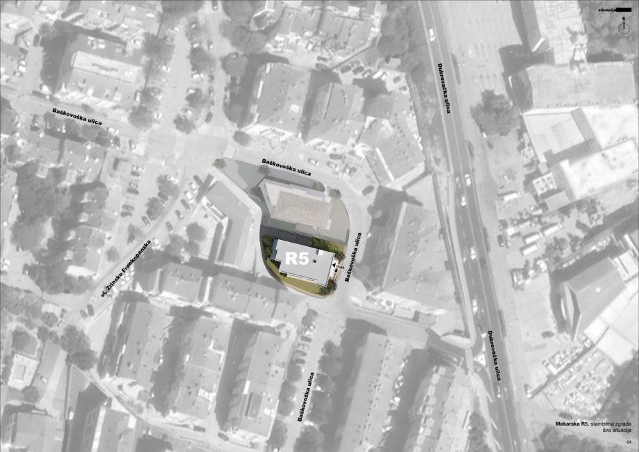 Prodaje se prostrani trosobni stan (S08) u urbanoj vili na istočnom dijelu Makarske, ispod magistrale, u mirnom okruženju s otvorenim pogledom na more.