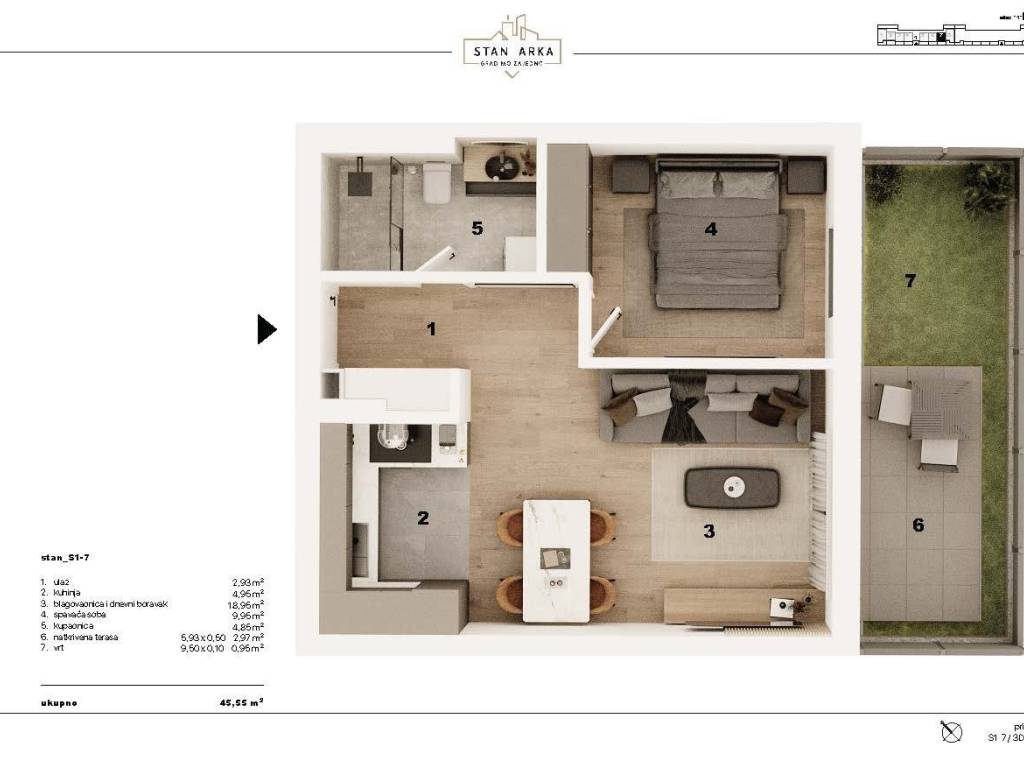 STAN S1-7-44,60 m2, 2-sobni, nalazi se u prizemlju (ULAZ 1)