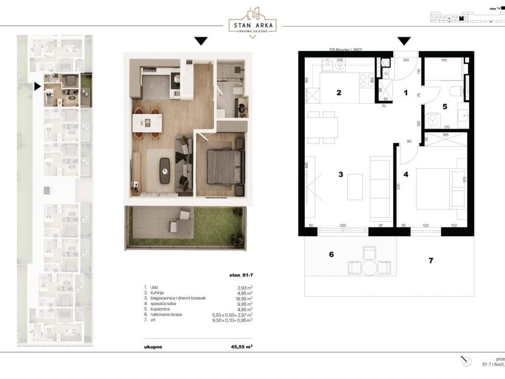 Ukupna površina s parkirnim mjestom i spremištem: 51,55 m²