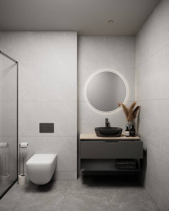 * Potpuno opremeljena kupaonica, walk-in tuš kabina, umivaonik sa slavinom, ormarić i ogledalo