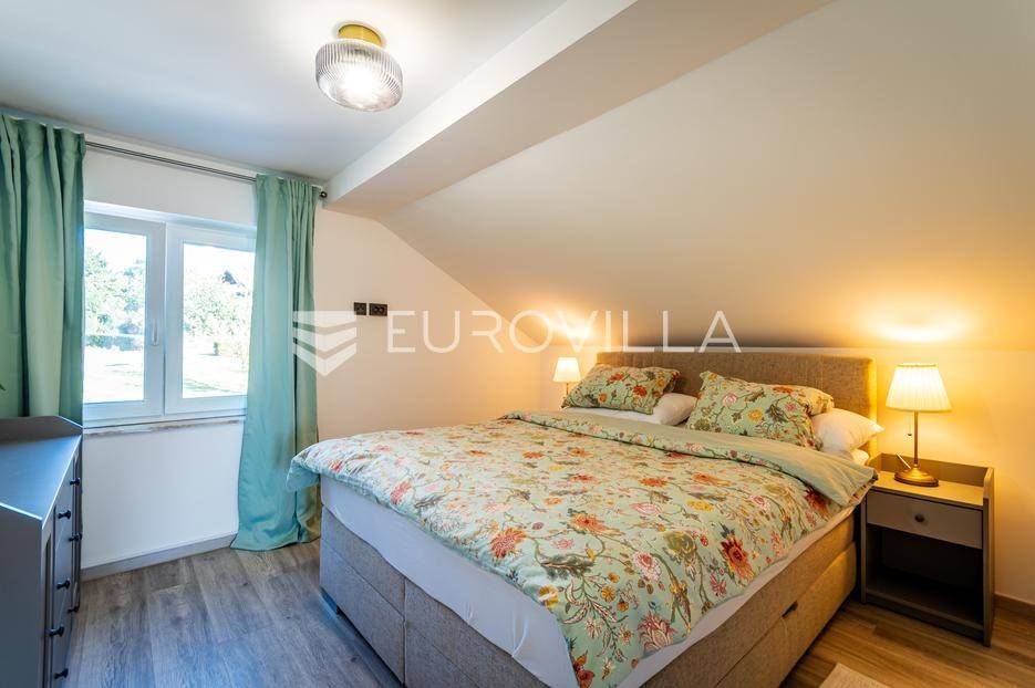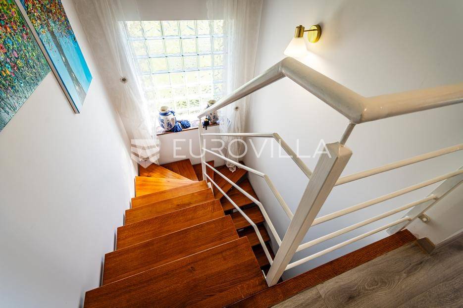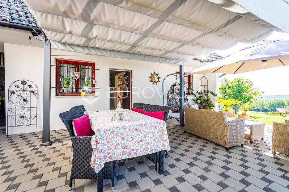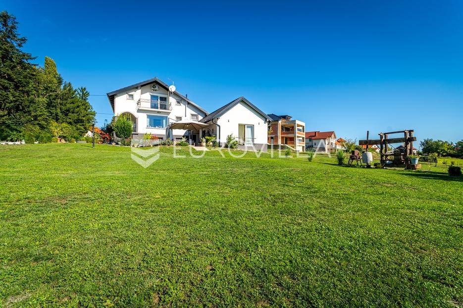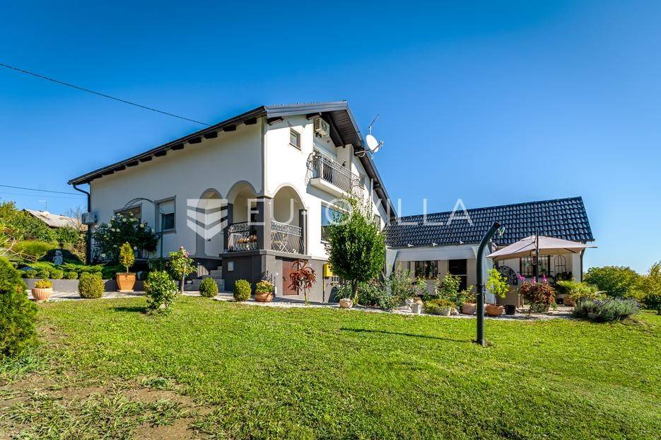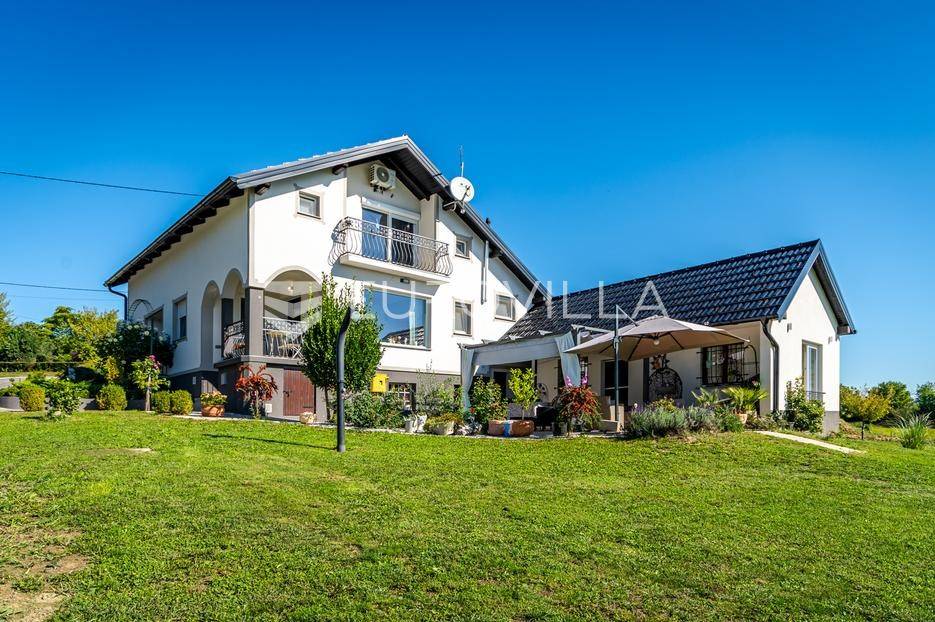 Sveti Juraj na Bregu, Lopatinec, na prostranom zemljištu površine čak 7213 m² nalazi se uređena obiteljska kuća, savršena za miran obiteljski život.Kuća se sastoji od tri etaže. U prizemlju se nalazi funkcionalan predprostor, vešeraj, garderoba, kupaonica, kuhinja, blagovaonica i dnevna soba. Prostor je vrlo svijetao, prozračan i ugodan za svakodnevni boravak.Na gornjoj etaži smještene su tri spavaće sobe, dodatna kupaonica, te impresivna master spavaća soba s izlazom na terasu. S terase se pruža prekrasan, otvoren pogled - savršeno mjesto za jutarnju kavu ili večernje opuštanje. Na svakom katu ugrađen je klima uređaj.U podrumu se nalaze dodatne prostorije za odlaganje stvari, kao i radiona za sve ljubitelje “uradi sam” projekata. Uz samu kuću nalazi se i garaža za dva automobila, a u dvorištu je smještena i ljetna kuhinja - idealna za obiteljska druženja ili proslave.Kuća ima podno grijanje i na svakom katu jednu klima jedinicu, dok je u krtnoj kućici grijanje na peć na drva. Okućnica je pomno uređena, s bogatom i održavanom hortikulturom, koja dodatno doprinosi dojmu doma i mira.Cijela parcela nalazi se unutar građevinske zone, što ostavlja brojne mogućnosti za daljnju gradnju ili uređenje dodatnih sadržaja.Za sva pitanja i termine razgledavanja stojimo na raspolaganju.