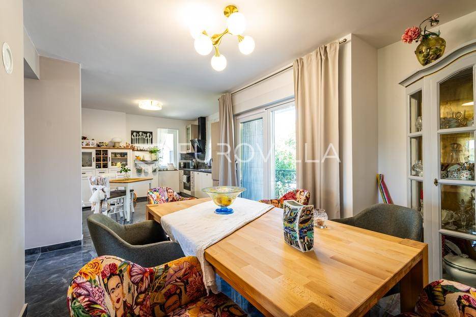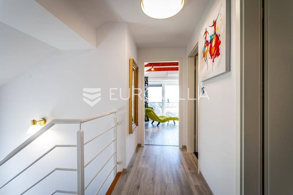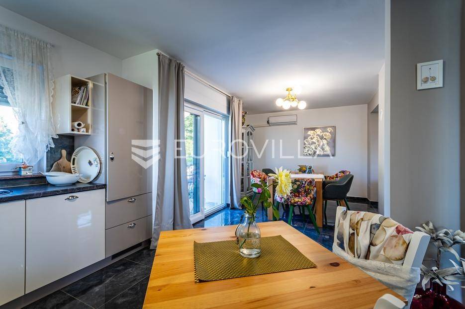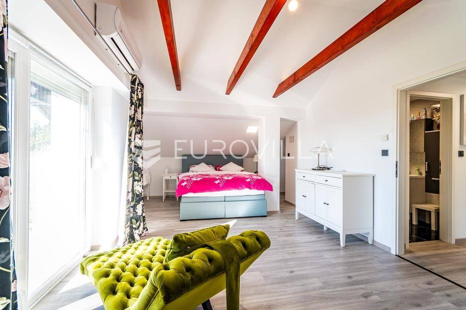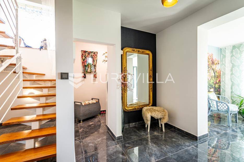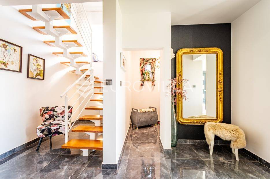 Sveti Juraj na Bregu, Lopatinec, na prostranom zemljištu površine čak 7213 m² nalazi se uređena obiteljska kuća, savršena za miran obiteljski život.Kuća se sastoji od tri etaže. U prizemlju se nalazi funkcionalan predprostor, vešeraj, garderoba, kupaonica, kuhinja, blagovaonica i dnevna soba. Prostor je vrlo svijetao, prozračan i ugodan za svakodnevni boravak.Na gornjoj etaži smještene su tri spavaće sobe, dodatna kupaonica, te impresivna master spavaća soba s izlazom na terasu. S terase se pruža prekrasan, otvoren pogled - savršeno mjesto za jutarnju kavu ili večernje opuštanje. Na svakom katu ugrađen je klima uređaj.U podrumu se nalaze dodatne prostorije za odlaganje stvari, kao i radiona za sve ljubitelje “uradi sam” projekata. Uz samu kuću nalazi se i garaža za dva automobila, a u dvorištu je smještena i ljetna kuhinja - idealna za obiteljska druženja ili proslave.Kuća ima podno grijanje i na svakom katu jednu klima jedinicu, dok je u krtnoj kućici grijanje na peć na drva. Okućnica je pomno uređena, s bogatom i održavanom hortikulturom, koja dodatno doprinosi dojmu doma i mira.Cijela parcela nalazi se unutar građevinske zone, što ostavlja brojne mogućnosti za daljnju gradnju ili uređenje dodatnih sadržaja.Za sva pitanja i termine razgledavanja stojimo na raspolaganju.