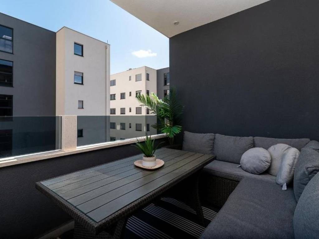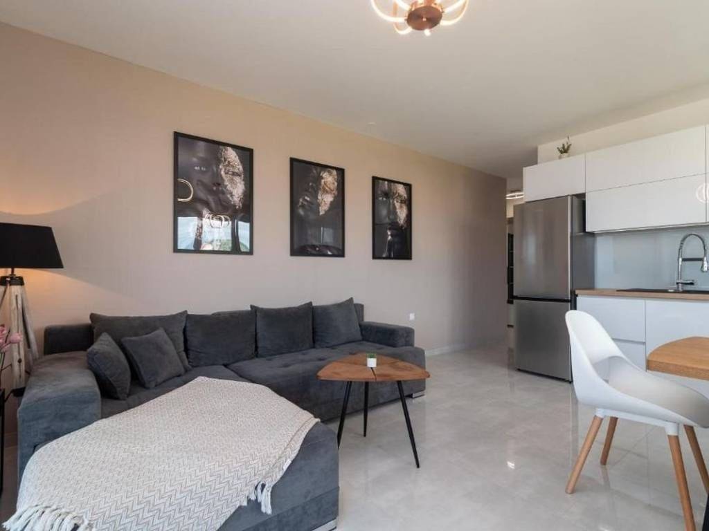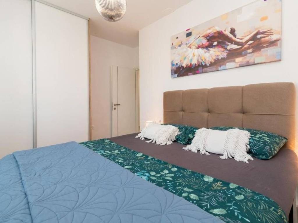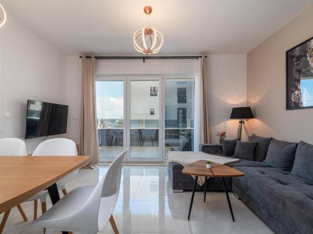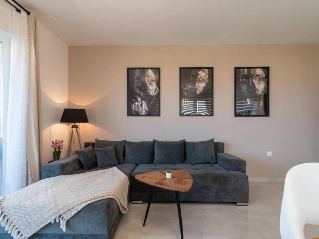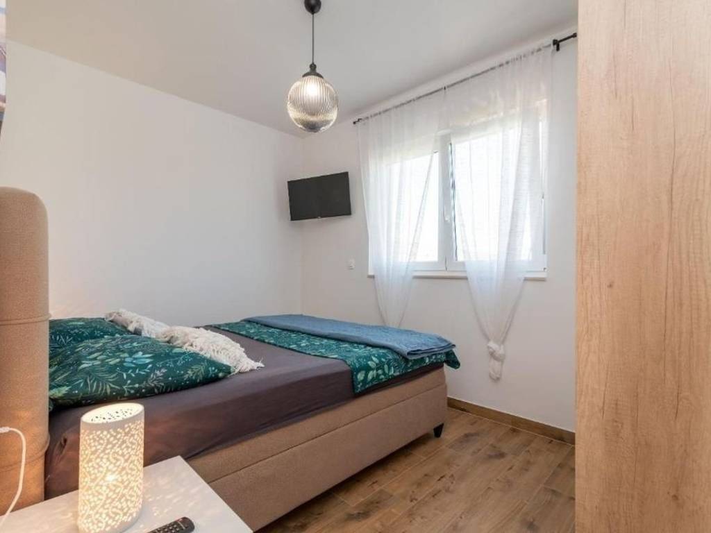 An attractive two bedroom apartment for rent located in a quiet and modernly decorated neighborhood in Trogir. The apartment is located on the second floor of a newly built residential building with an elevator, surrounded by similar new buildings and a quality landscaped environment. The total area of the apartment has 53,30 m², and the additional value is provided by a spacious balcony of 10,70 m² from which a partial view of the sea and the surrounding areas is offered. The apartment has a functional layout and consists of an entrance area and hallway, a modern bathroom with underfloor heating, two comfortable bedrooms and an open kitchen, dining room and living room with access to the balcony. The sleeping area of the apartment is oriented to the northeast, which ensures peace and a pleasant temperature during the warmer months, while the living area is oriented to the southeast, allowing plenty of natural light and a pleasant atmosphere throughout the day. The apartment is airconditioned and is rented fully furnished and equipped with high quality, modern furniture and is ready to move in immediately. The apartment comes with one outdoor parking space located behind the building. The building in which the apartment is located was built according to high standards – it is equipped with a video intercom, a security door, and the apartments also have a shared swimming pool and environment. This property represents an excellent opportunity for urban living. Thanks to its excellent location – close to all important facilities, beaches, restaurants and schools – the apartment offers a perfect combination of comfort, quality and affordability.