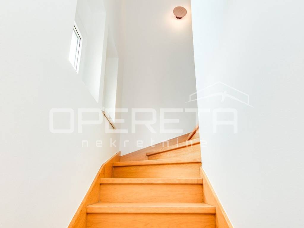 U potkrovlju se nalazi hodnik sa stubištem, ugradbeni ormari, kupaonica i 3 prostrane sobe, s blagim kosinama.