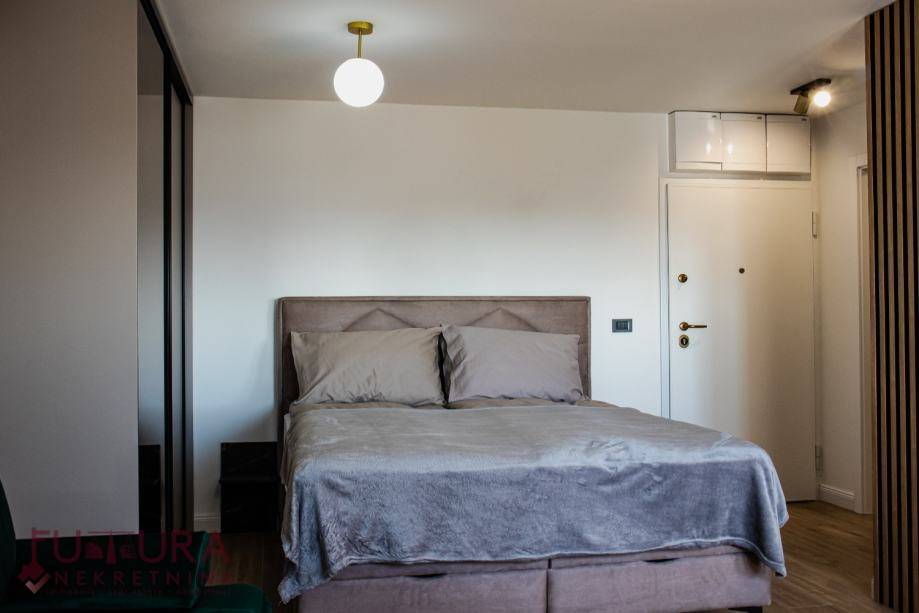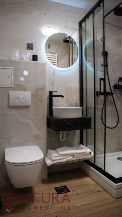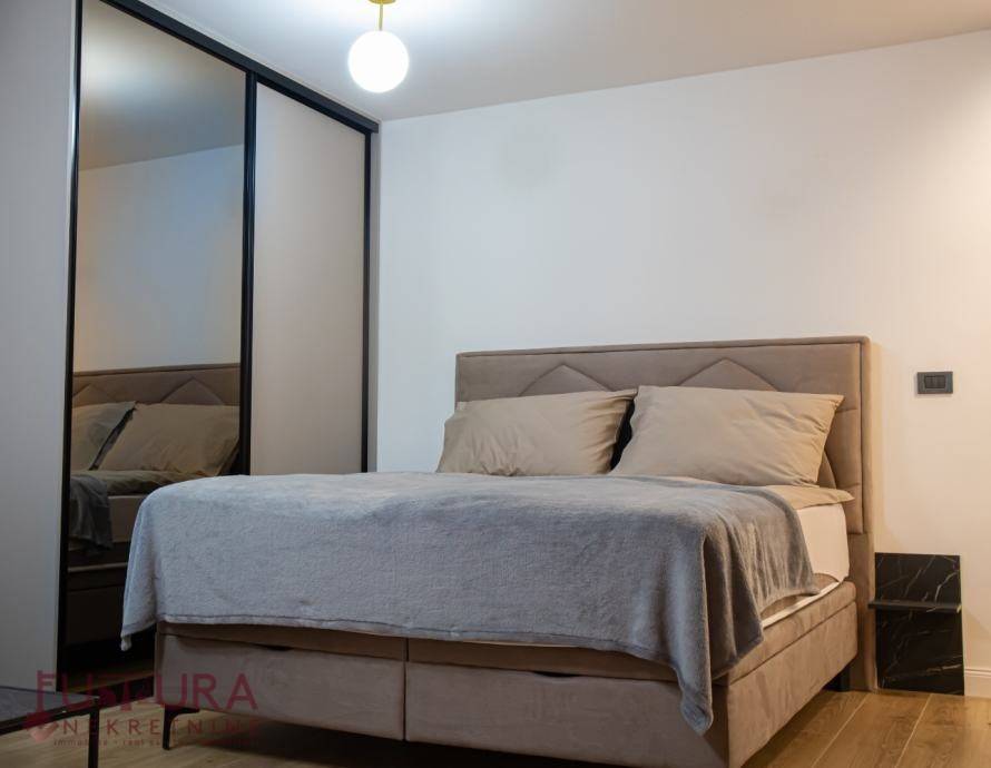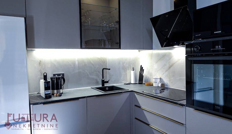 Unutrašnjost stana odlikuje izvrsna raspodjela prostora – dnevni boravak povezan s blagovaonicom i kuhinjom, spavaći dio, moderno uređena kupaonica te ulazni hodnik.