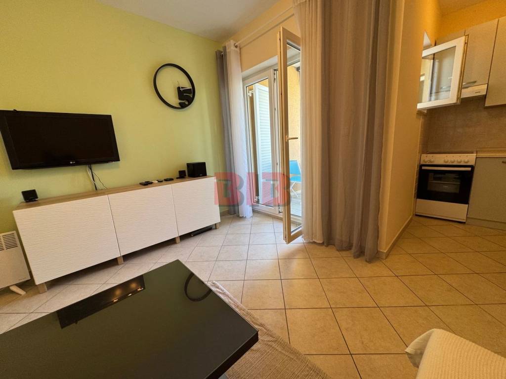 Apartman se sastoji od hodnika,dnevnog boravka,kuhinje,kupaonice i lođe.Stan ima pripadajući parking,kompletno namješten,mirna lokacija,a od mora-plaže je uda ljen cca 250 do 300 metara.