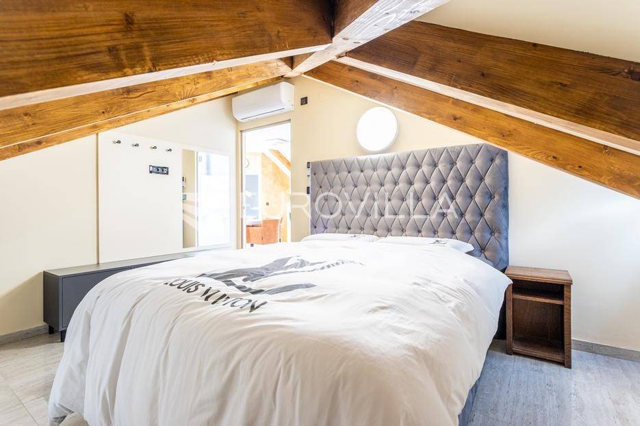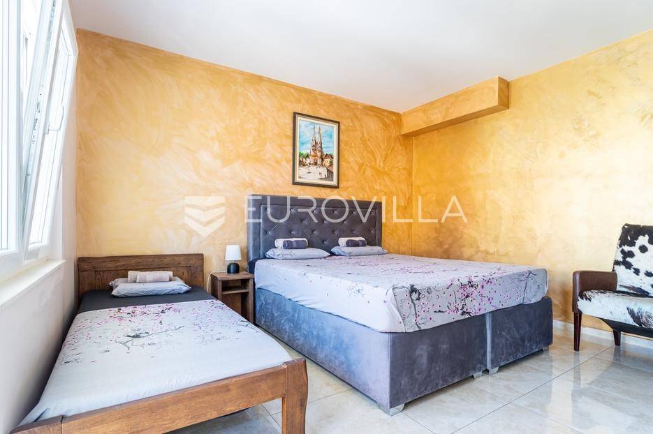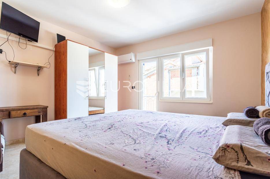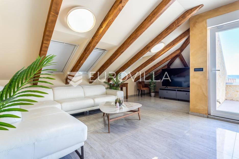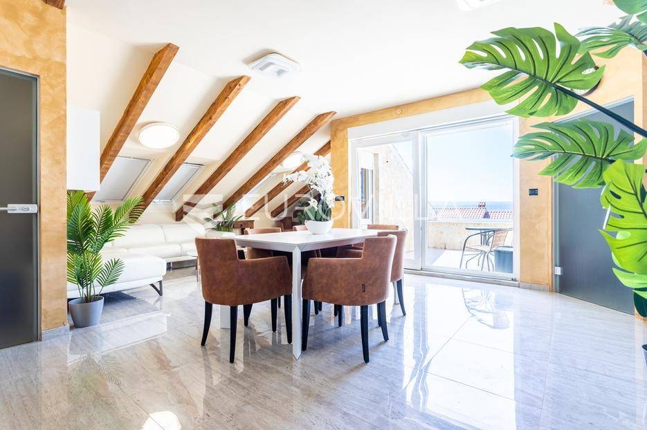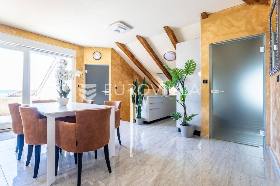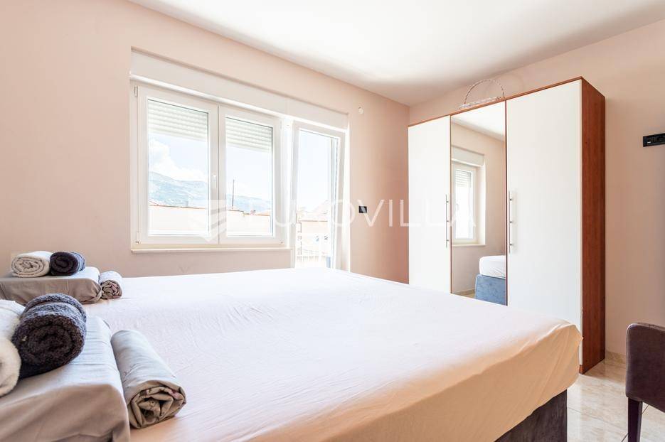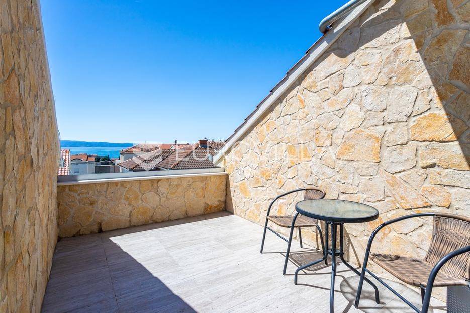 Stobreč, dva stana u rezidencijalnom dijelu Splita s pogledom na more.Na mirnoj lokaciji par minuta hoda od mora, u kući s četiri stambene jedinice i vanjskim parkingom.Stanovi se protežu na trećem katu i potkrovlju, etažirani kao jedna jedinica ali u naravi dva stana za zasebnim ulazima - idealno za život i investiciju.Unutarnje zajedničko stubište vodi do glavnog ulaza. Prvi stan površine je 115 m2 i sastoji se od tri prostrane spavaće sobe, dvije kupaonice, dnevnog boravka, kuhinje i blagovaonice s izlazom na dva balkona. Potpuno renoviran i moderno uređen prodaje se namješten. Na istoj etaži ulazi se u drugu jedinicu - dvoetažni stan tlocrtne površine 120 m2. sastoji se od dva dnevna boravka, tri spavaće sobe, dvije kupaonice, kuhinje, blagovaonice, balkona i terase s lijepim pogledom na more.Stanovi su zahvaljujući lokaciji i blizini svih sadržaja odlična investicija.Vlasništvo uredno.Više informacija na upit.