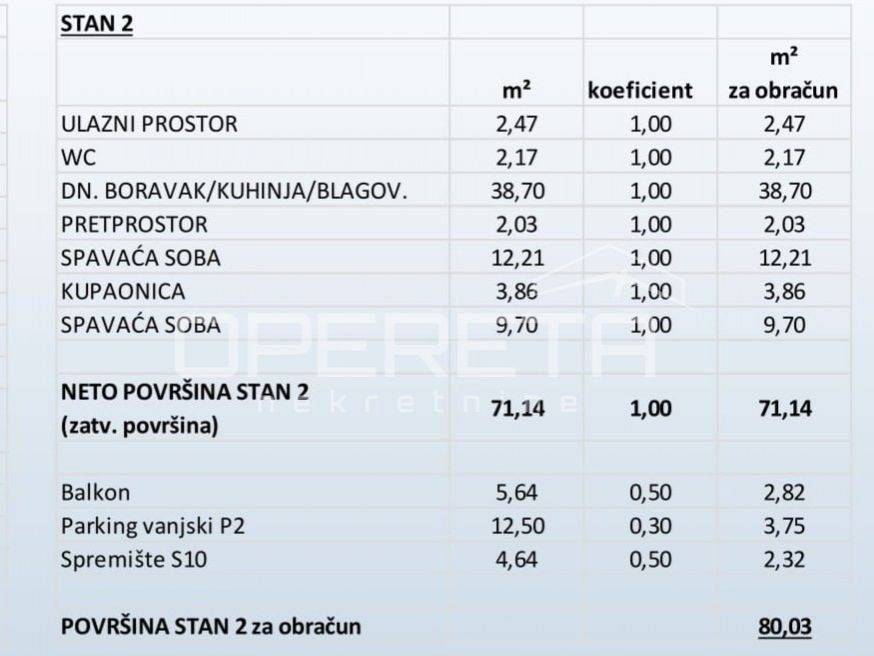 Apartment S2 is located on the ground floor of the building. It consists of 2 bedrooms, a kitchen, a living room and dining room, a bathroom, a toilet and a hallway. It also has a 5.64 m2 balcony, a storage room and an outdoor parking space.