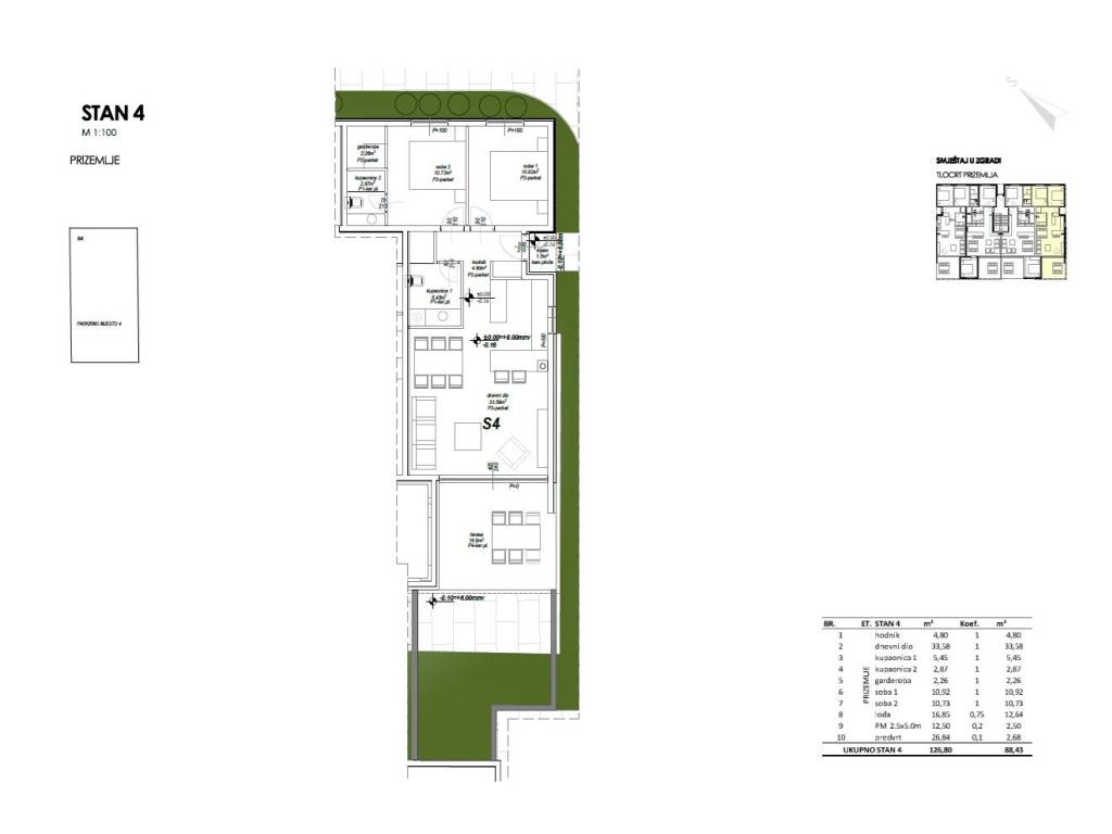 PRIVLAKA, for sale a comfortable two-bedroom apartment S4 just 100 m2 from the sea with a garden of 26.84 m2!!