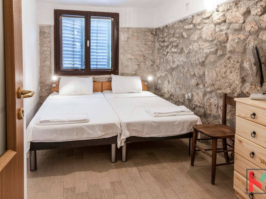 Kuća je preuređena u vrlo autentičnom istarskom stilu, sa puno kamena i drva, sa velikom okućnicom i još dva dodatna apartmana. Kuća je kategorizirana i služi za turistički najam. Grijani bazen veličine 8x7m, koji se nalazi podno kamenog grebena, pruža nam užitak i tišinu koju rijetko koja nekretnina može nadmašiti.