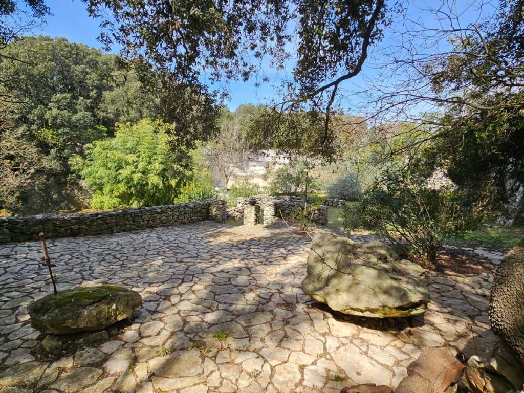 Prostire se na nekoliko odvojenih parcela s visinskim razlikama što osigurava razigranost i različitu funkcionalnost korištenja nekretnine. Na jednom je dijelu bazen ukopan u stari kamenolom, na drugom dijelu igralište za badgminton, na povišenom dijelu među stablima u dubokom hladu, dio za odmor sa ležaljkama te odvojena parcela spremna za gradnju još jednog objekta odvojen od pogleda u dubokom hladu.