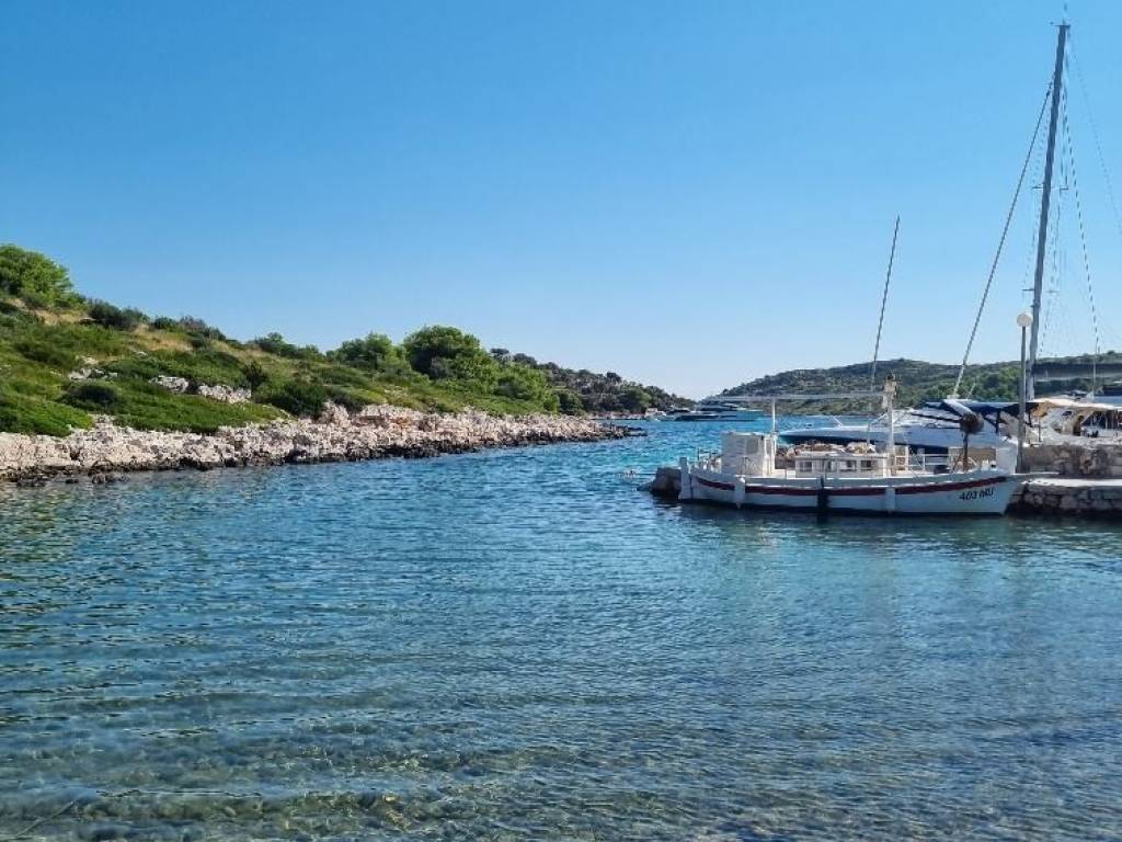 prodaje se kuća na Kornatima, južna strana otoka Žutapremaotoku VelikiKornat, tlocrtnepovršine 50 m2sutereniprizemljeneto stambene oko 80 m2,, deset metara od mora u mirnoj uvali s betoniranim pristaništem za nekoliko čamaca, s pogledom na more ikornatske otoke, na 2000 m2 zemljišta dijelom s maslinikom. U blizini su svjetski poznate uvale s restoranima za ekskluzivni nautički turizam. Moguće je postavljanje mobilnih kućate dogradnje pomoćnih sadržaja u skladu s prostornim uređenjem nacionalnog parka Kornati. Cijena 800.000 €