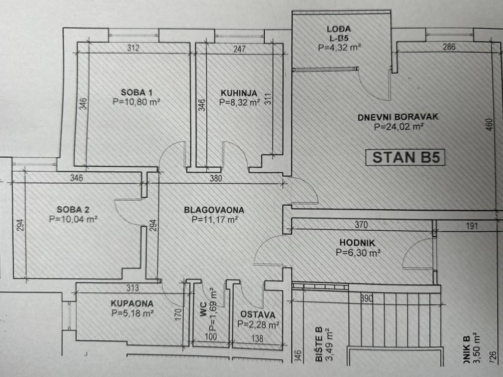 Prodaje se stan u centru Bjelovara, Gundulićeva ulica. Stan se nalazi na drugom katu stambene zgrade, površine 83 m2, a sastoji se od dnevnog boravka sa izlazom na lođu, dvije spavaće sobe, kuhinje s blagovaonom, predsoblja, kupaone, wc-a i hodnika. Zgrada je završena 1975.g., a stan se nalazi u izvornom stanju. Grijanje je preko kotlovnice, klima je u boravku. S obzirom na površinu dnevnog boravka, prebacivanjem instalacija vode u boravak dobila bi se još jedna spavaća soba. Stan je uknjižen, zgrada ima uporabnu dozvolu. Zgrada ima svoj parking kojem se pristupa otvaranjem rampe na daljinski. Stan gleda na dvorišnu stranu tako da nema nikakve buke, a nalazi se u samom centru grada, 150 m od Korza, trga Eugena Kvaternika, te svih bitnih sadržaja za svakodnevni život. Cijena stana je 162.000 €