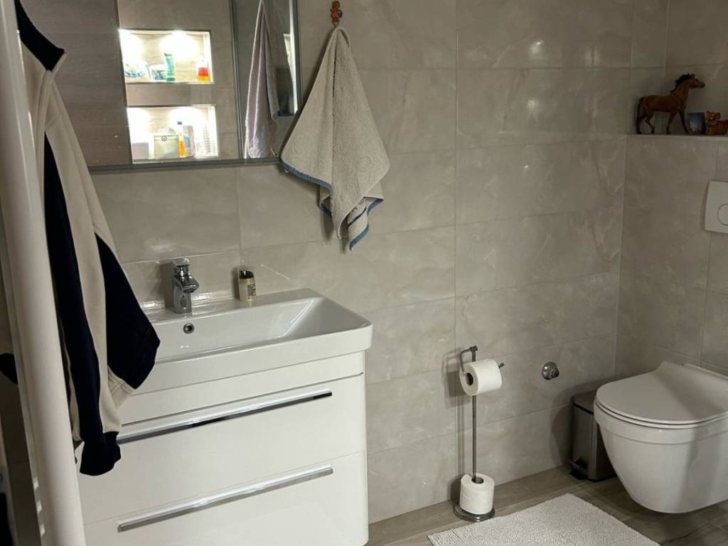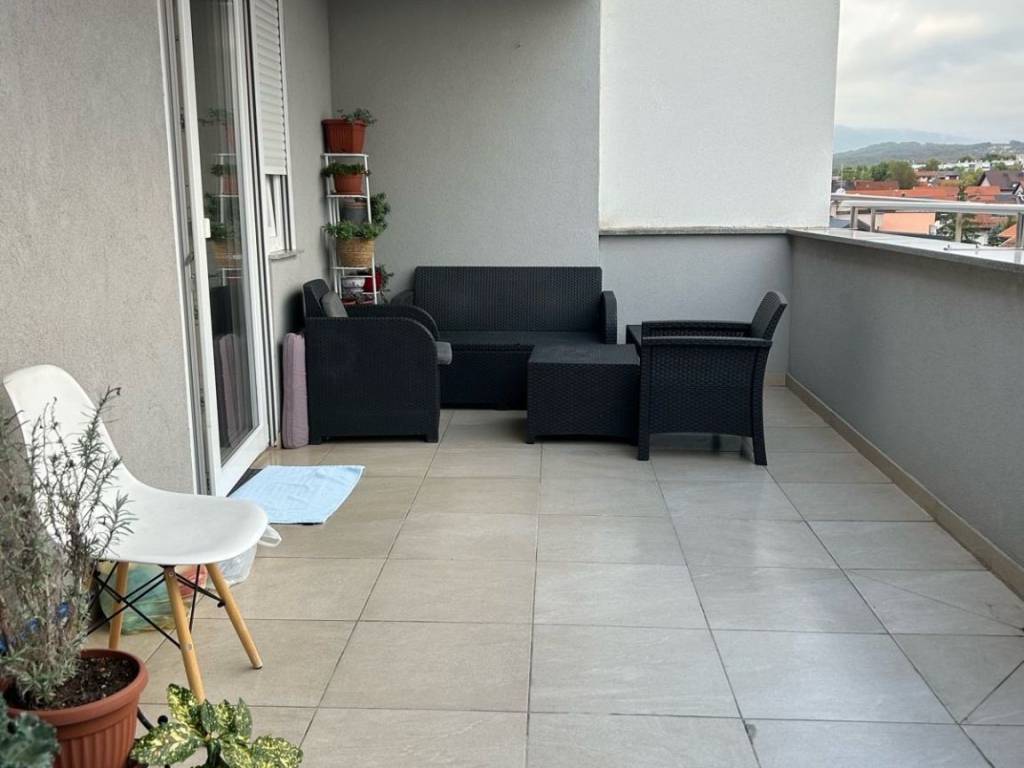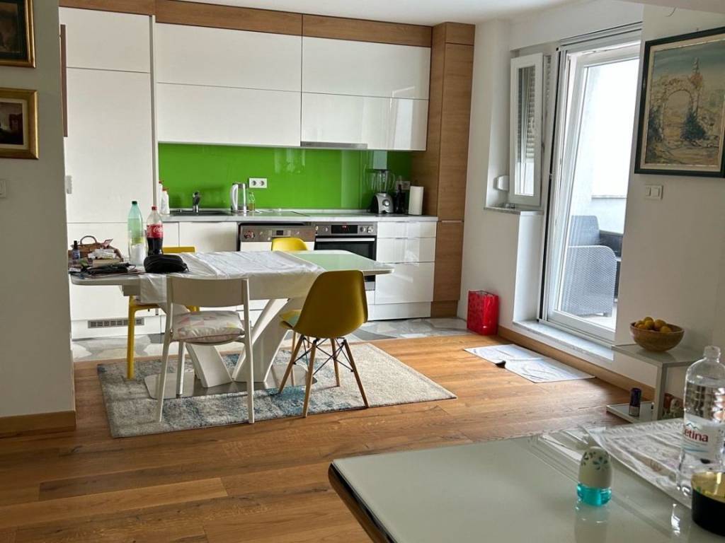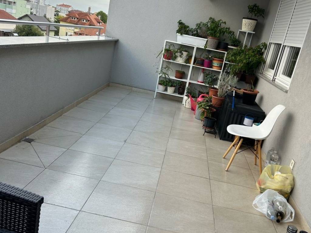 3 soban stan, novogradnja, penthouse u Zagrebu, Dubrava - Klaka, Garešnička ulica, 80 m2 i spremište 4,50 m2. Stan se sastoji od hodnika, kupaone s wc-om, velikog dnevnog boravka sa kuhinjom i blagovanom i izlazom na veliku natkrivenu terasu istočno orijentiranu, zatim dvije spavaće sobe obje sa izlazom na veliku natkrivenu terasu. Jedna spavaća soba ima svoju kupaonu s wc-om. Obje spavaće sobe su orijentirane na zapad. Stan je u potpunosti namješten i opremljen. Spremište u podrumu 4,5 m2. Stan i zgrada se nalaze u mirnoj ulici bez buke, u neposrednoj blizini svih važnijih sadržaja: dom zdravlja, privatne poliklinike, bolnica, ljekarne, gimnazija, škole, vrtići, ugostiteljski objekti, sportski centri, trgovački centar, trgovine, javni prijevoz. Mogućnost kupnje garaže u istoj zgradi. Dokumentacija je uredna, te je moguća kupnja putem kredita banke.