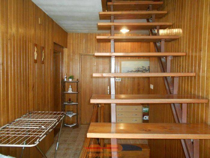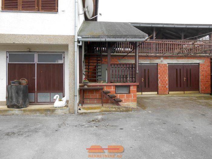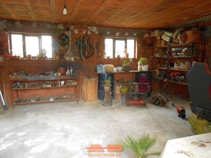 Prizemlje: hodnik, boravak sa kuhinjom i blagovaonom, ostava, spavaća soba i kupaona + garaža, te objekt u ključu koji je spojen (još 2 garaže, radiona, kotlovnica).