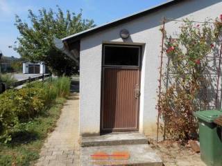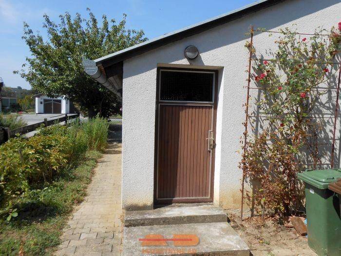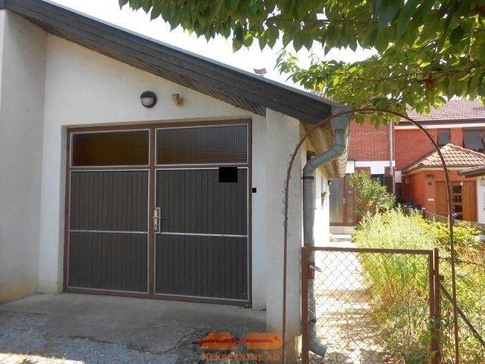 Ispred kuće je garaža sa kanalom i iza je ostava.