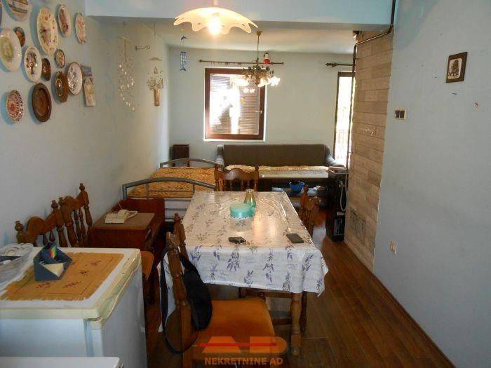 Prizemlje: hodnik, kupaona sa wc-om, ostava, boravak sa kuhinjom i blagovaonom, te izlaz na terasu i dvorište.